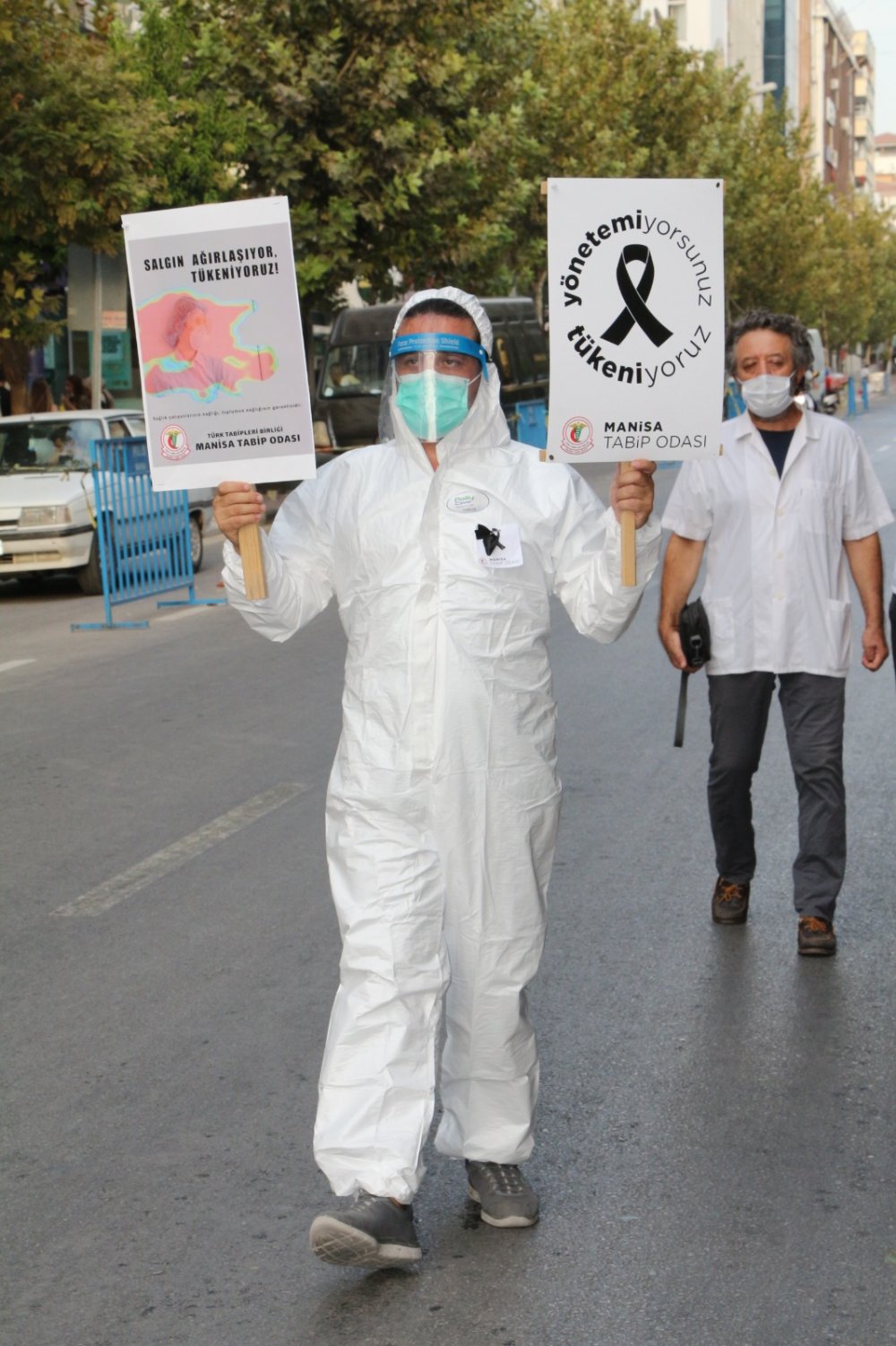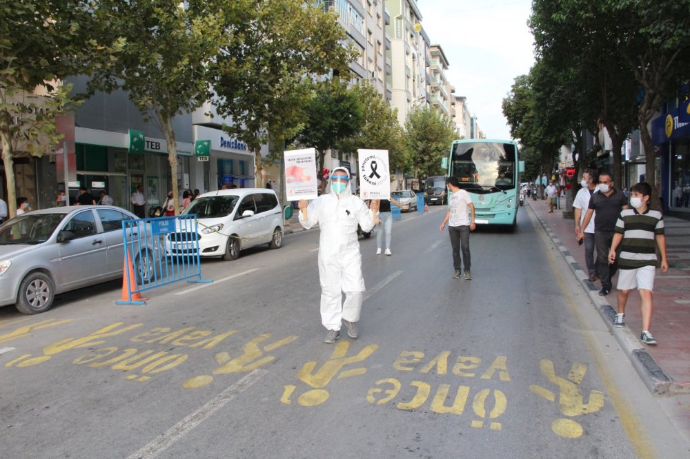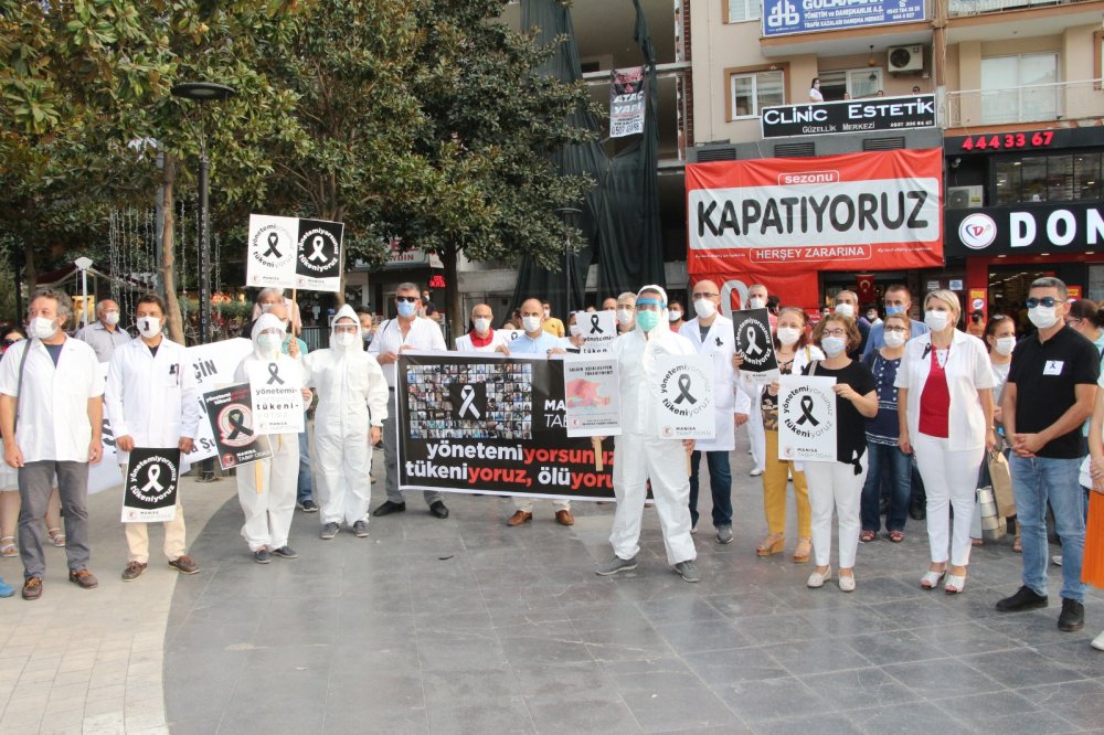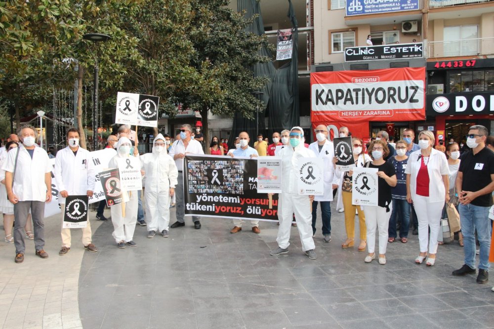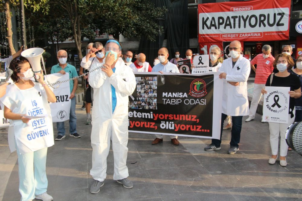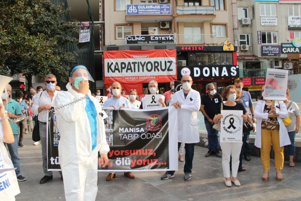 Türk Tabipleri Birliği, Türkiye’nin tüm illerinde eş zamanlı covid-19 eylemi yaptı. Manisa’daki eylem 15 Temmuz Demokrasi Meydanı’nda gerçekleşti. Katılımcılar adına konuşmayı Manisa Tabip Odası Başkanı Şahut Duran yaptı. Duran, Manisa’da günlük ortalama 300 pozitif vaka olduğunu, bunların da yüzde 10’unun sağlık personeli olduğunu iddia etti. Ülke genelinde covid-19 salgınında tedavi ortamlarının iyileştirilmesi ve sağlık sektöründe yeni atamaların derhal yapılması gerektiğini belirten Duran, 8 günde 8 sağlıkçının virüs nedeniyle hayatını kaybettiğini söyledi. Duran, hastanelerin ve sağlıkçıların bu süreçte ayakta kalması gerektiğini vurguladı.