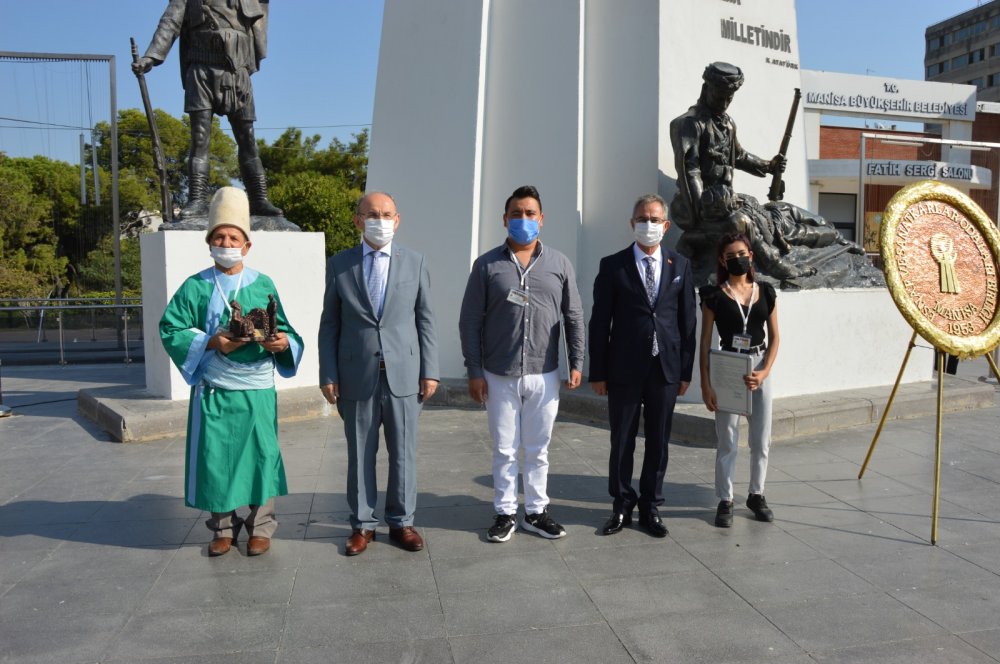 Manisa’da esnaf ve sanatkarın bayramı olan ve bu yıl 33’üncüsü kutlanan Ahilik Haftası pandemi tedbirleri kapsamında gerçekleşti. Törene Manisa Valisi Yaşar Karadeniz, Jandarma İl Komutanı Tuğgeneral Selçuk Yıldırım, Manisa İl Emniyet Müdürü Ömer Uslusoy, Rektör Yardımcısı Prof. Dr. Ramazan Gökbunar, CHP Manisa İl Başkanı Semih Balaban, Şehzadeler Belediye Başkan Yardımcısı Mehmet Kavas, Yunusemre Belediye Başkan Yardımcısı Şule Uygur, Ticaret İl Müdürü Muharrem Özel, daire müdürleri, esnaf odaları başkanları katıldı.