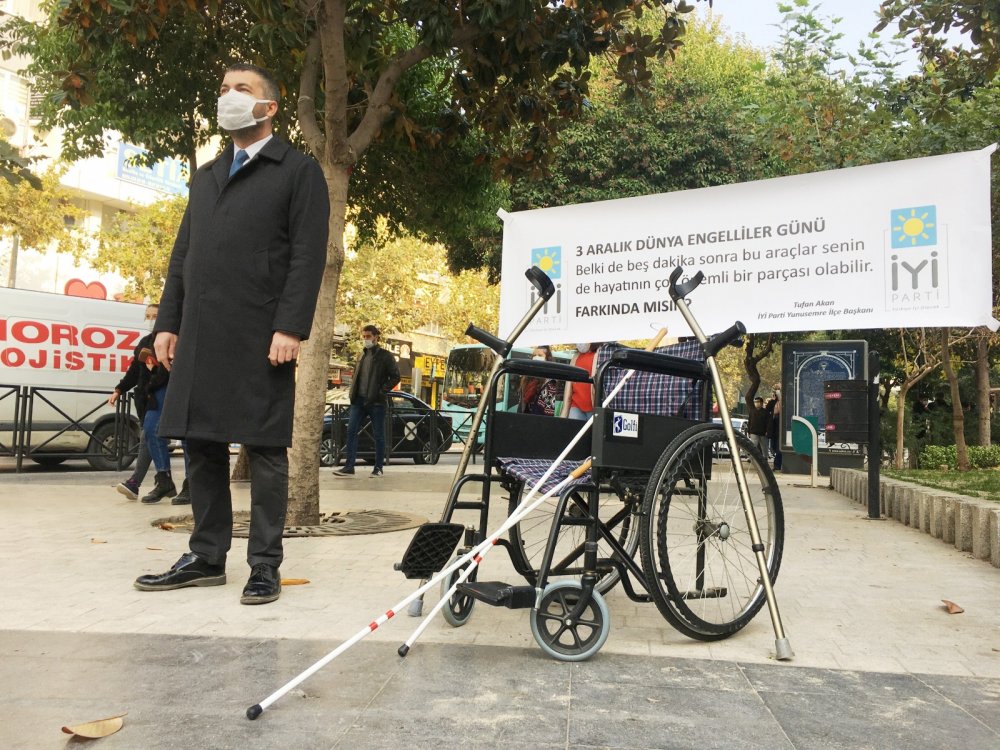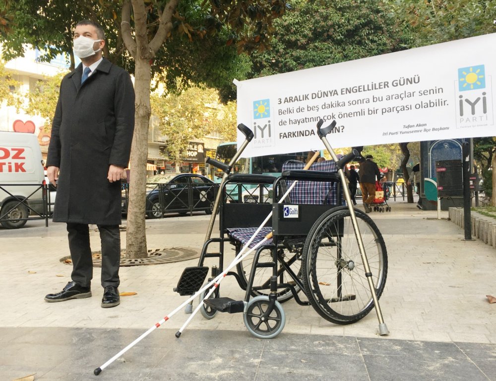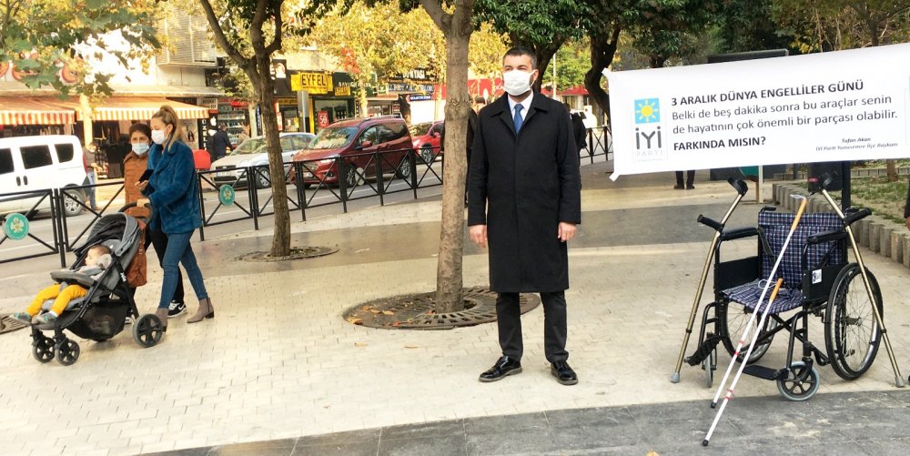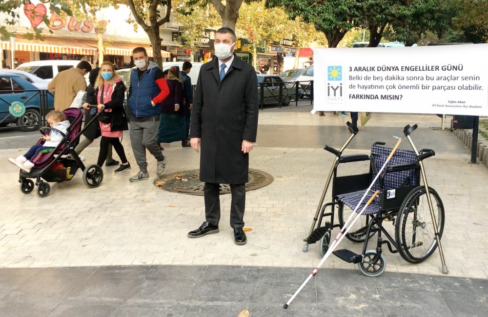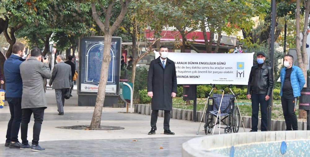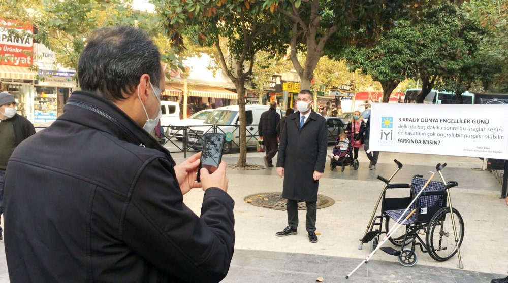 Sessiz eylemin ardından açıklamada bulunan İYİ Parti İlçe Başkanı Tufan Akan,” 3 Aralık Dünya Engelliler günü bu vesileyle bir farkındalık yapmak istedik. Çünkü her hangi bir sebepten dolayı özrü ve engelli bulunan Türkiye’de 8 milyon vatandaşımız var. Günlük yaşamda engelli vatandaşlarımızı göremiyoruz. Bunlarında çeşitli sebepleri var.En basiti yollardaki onların kullanımına açık olan o sarı şeritli alanların yeterli olmadığını biliyoruz, görüyoruz ve tespit ediyoruz. Biz diyoruz ki yerel belediyelerin ve merkezi hükümetlerin bu engelleri ortadan kaldırması lazım. Engelli vatandaşlarımıza engelsiz bir yaşam sunması lazım, bunun takipçisiyiz. Bugünde bu önemli günde bir farkındalık yaratmak adına böyle bir oluşumun içerisine girdik. Vatandaşlarımızın dikkatini çekmeye çalıştık” diye konuştu.