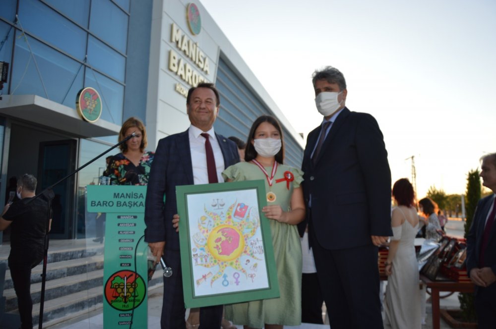 Manisa Barosu Kadın ve Çocuk Hakları Komisyonu tarafından ortaokul öğrencileri arası düzenlenen Çocuk Gözü ile Hukuk ve Atatürk konulu resim yarışmasında dereceye giren öğrencilere Manisa Cumhuriyet Başsavcısı Ali Ulvi Yılmaz ve Manisa Barosu Başkanı Ali Arslan tarafından çeşitli hediyeler takdim edildi. Meslekte 50. yılını, 40. yılını ve 25. yılını geride bırakan avukatlara plaket takdim edildi. Konuşmaların ardından Başkan Arslan, yeni hizmet binasını misafirlere tanıttı.