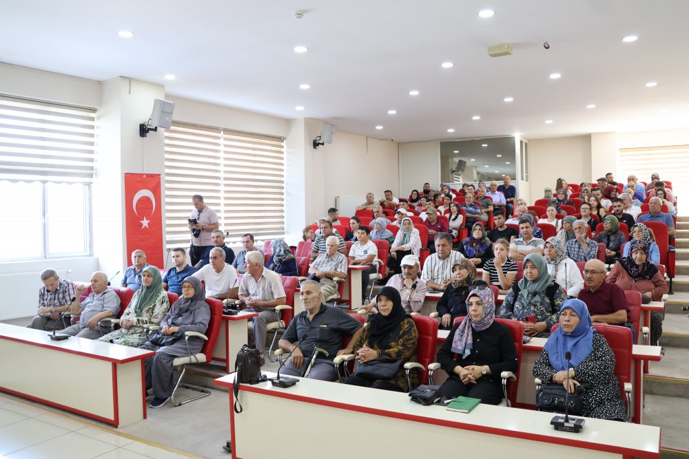 Törende Manisa Çevre, Şehircilik ve İklim Değişikliği İl Müdürü Faik Gürocak hak sahibi ailelere hayırlı olsun dileklerinde bulunarak, borçlandırma işlemleri ve daha sonraki süreçlerle ilgili bilgilendirme yaptı. (Turgay Duyar)