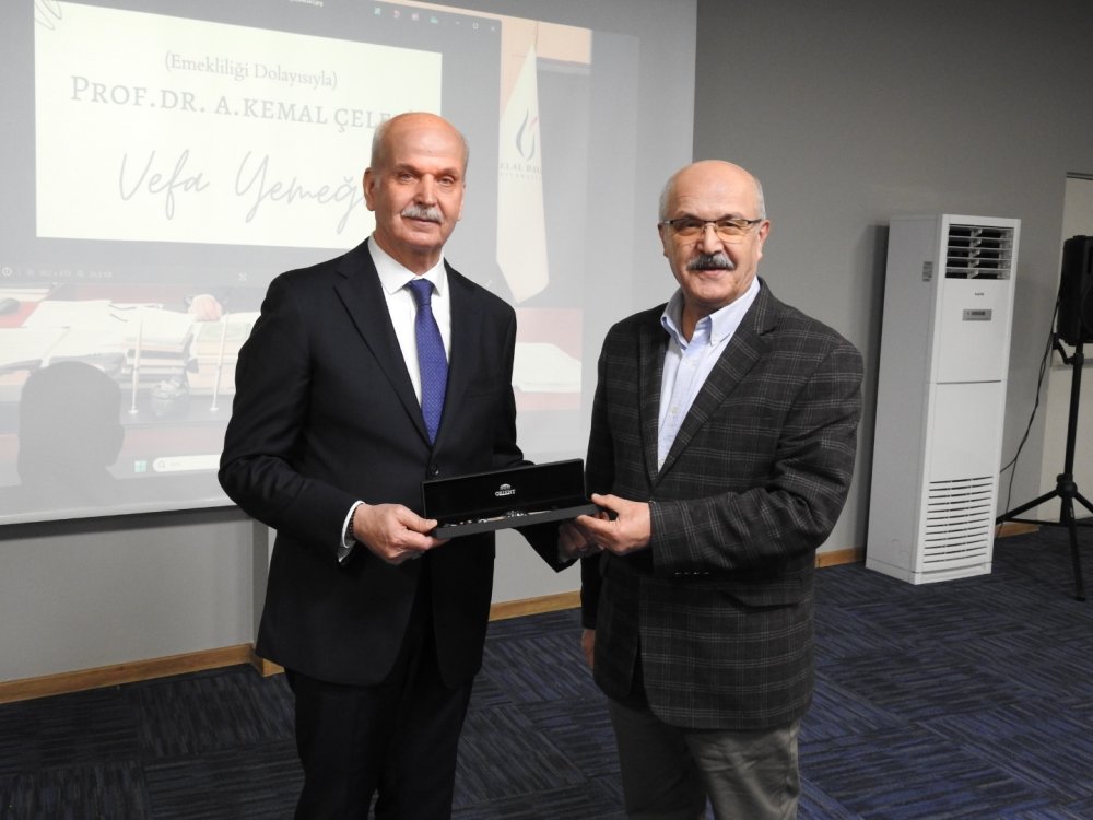 Prof. Dr. Çelebi, “Emekliliğimin hemen sıcağı sıcağında böyle programı düzenlemeyi arzu etmişler. Ve tabii ki insan mutlu oluyor. Böyle bir programda bir araya geldik. İşte doğduk, okuduk, iş güç sahibi olduk, evlendik ve hizmet ettik ve sonra da emeklilik. Öncelikle babamın üzerindeki hakkı ve emeği çoktur. Annem bir şefkat ve merhamet kadınıydı. Onları öncelikle rahmetle minnetle anmak istiyorum. Allah rahmet eylesin. Tabii ondan sonra insan hayatındaki önemli aşamalardan bir tanesi de evlilik. Bugün belli yerlere gelebildiysem belli şeyleri başarabildiysem bunda sevgili eşim Asiye Gül Hanım'ın çok büyük bana kattığı değerler var. Yani Allah her şeyi verdi, sağlık verdi. Hayırlı bir eş, hayırlı evlatlar, bundan daha büyük bir zenginlik olamaz.” Diye konuştu.