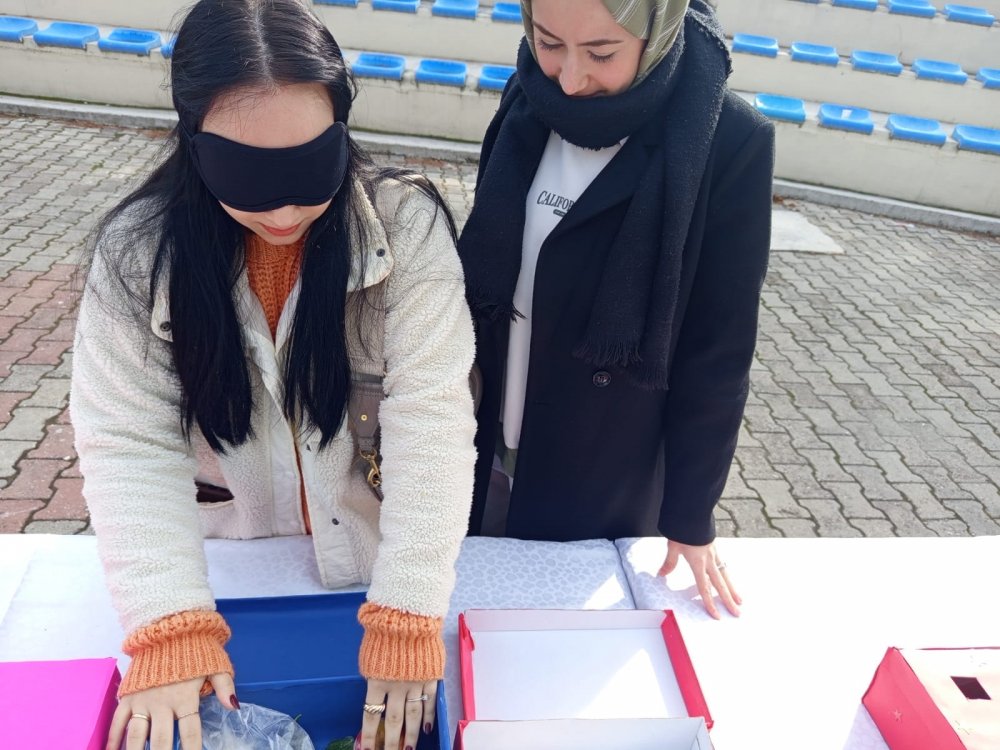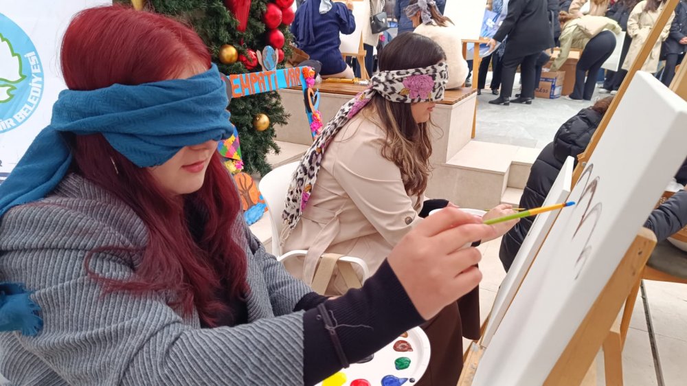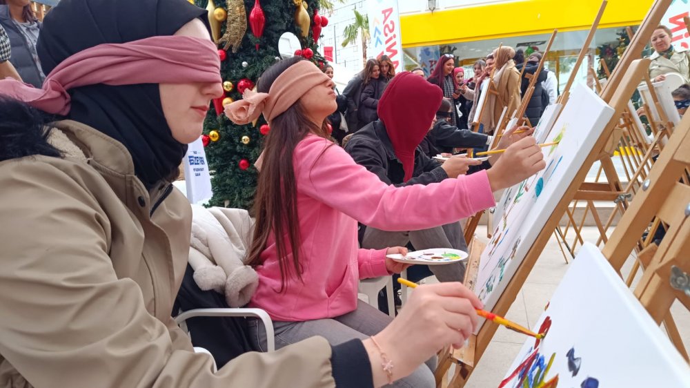 Etkinliğin ilk gününde Meydan AVM'de kendileri için ayrılan bölüme gelen öğrenciler, gözlerine bez bağlayarak görmeden tuval zerine yağlı boya resim yapmaya çalıştılar. Etkinlik hakkında açıklama yapan MCBÜ Sağlık Hizmetleri Meslek Yüksek Okulu Öğretim Görevlisi Özge Balık, amaçlarının öğrencilerin empati yaparak engelleri aşmalarını saplamak olduğunu kaydetti.