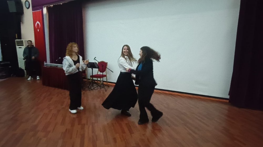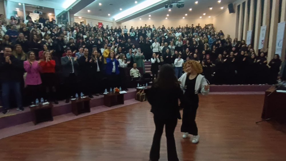 Ezgi Sahillioğlu konuşması sonrasında salonda bulunanlarla birlikte dans gösterisi gerçekleştirdi. (Turgay Duyar)