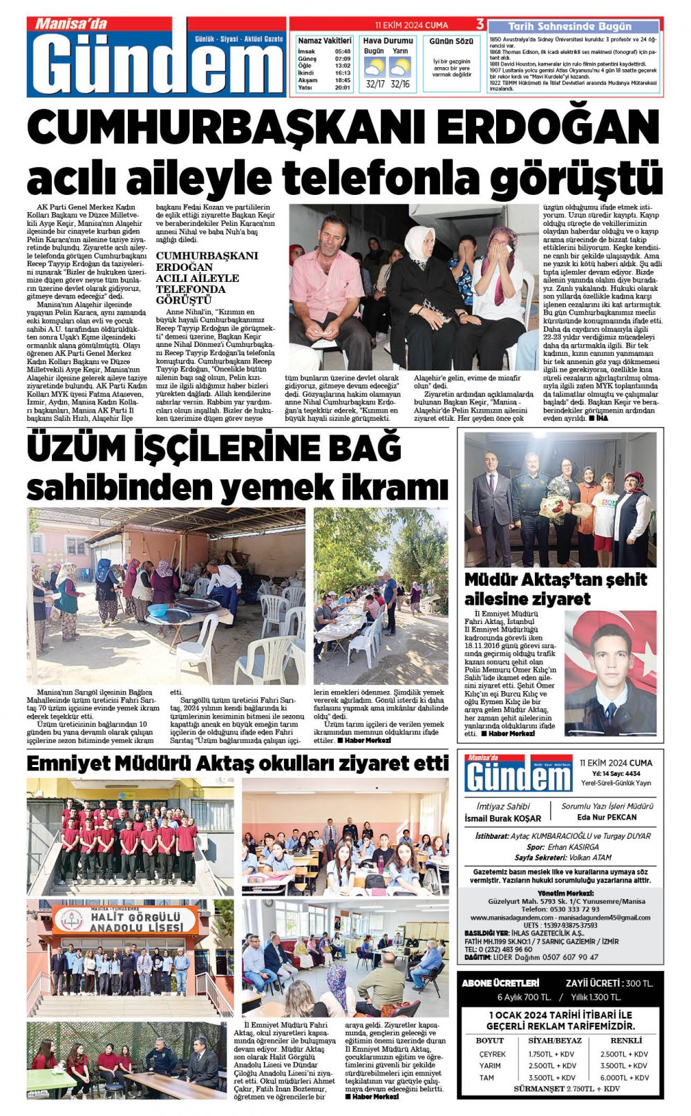 11 Ekim 2024 GAZETEMİZ