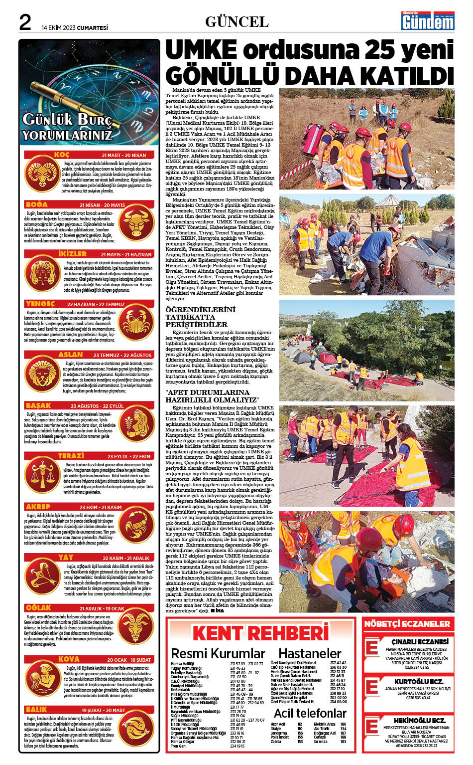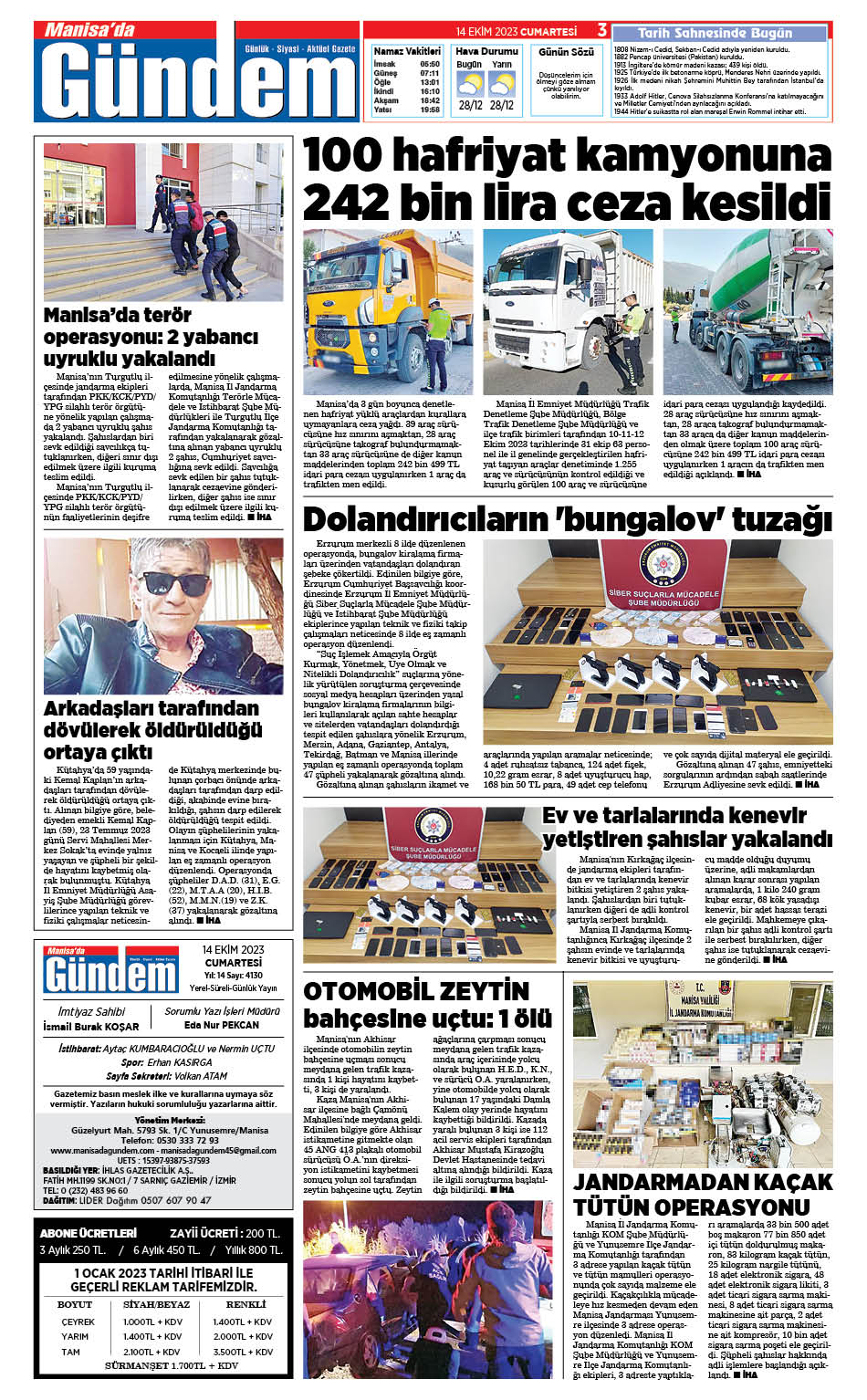 14 Ekim 2023 GAZETEMİZ