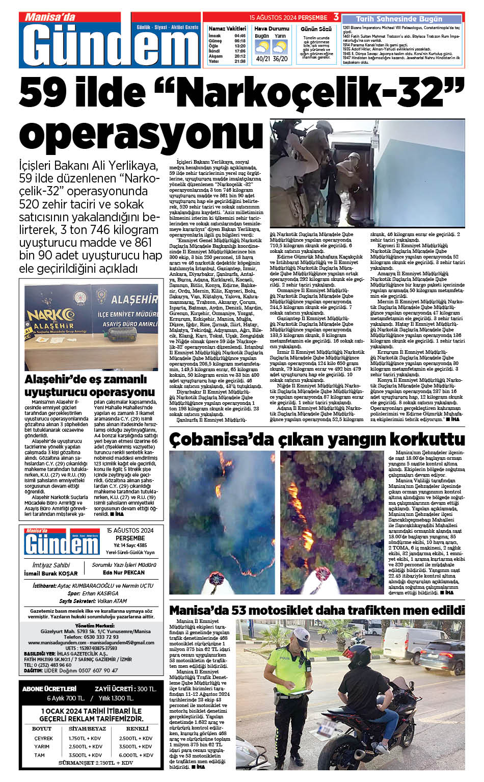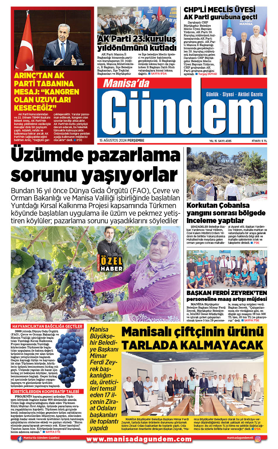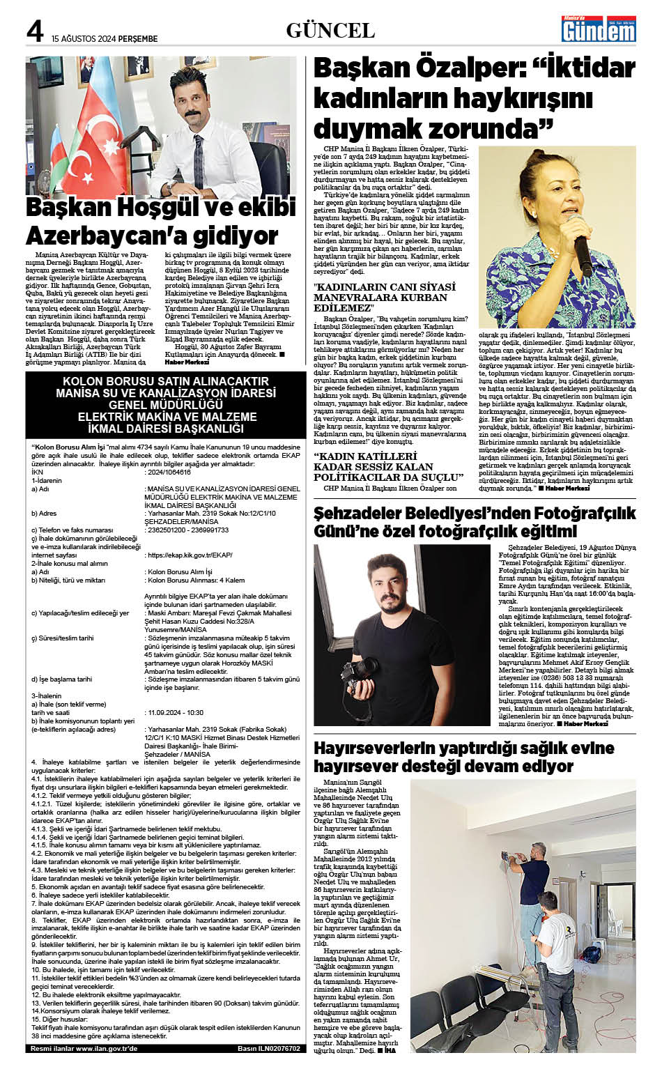 15 AĞUSTOS 2024 GAZETEMİZ