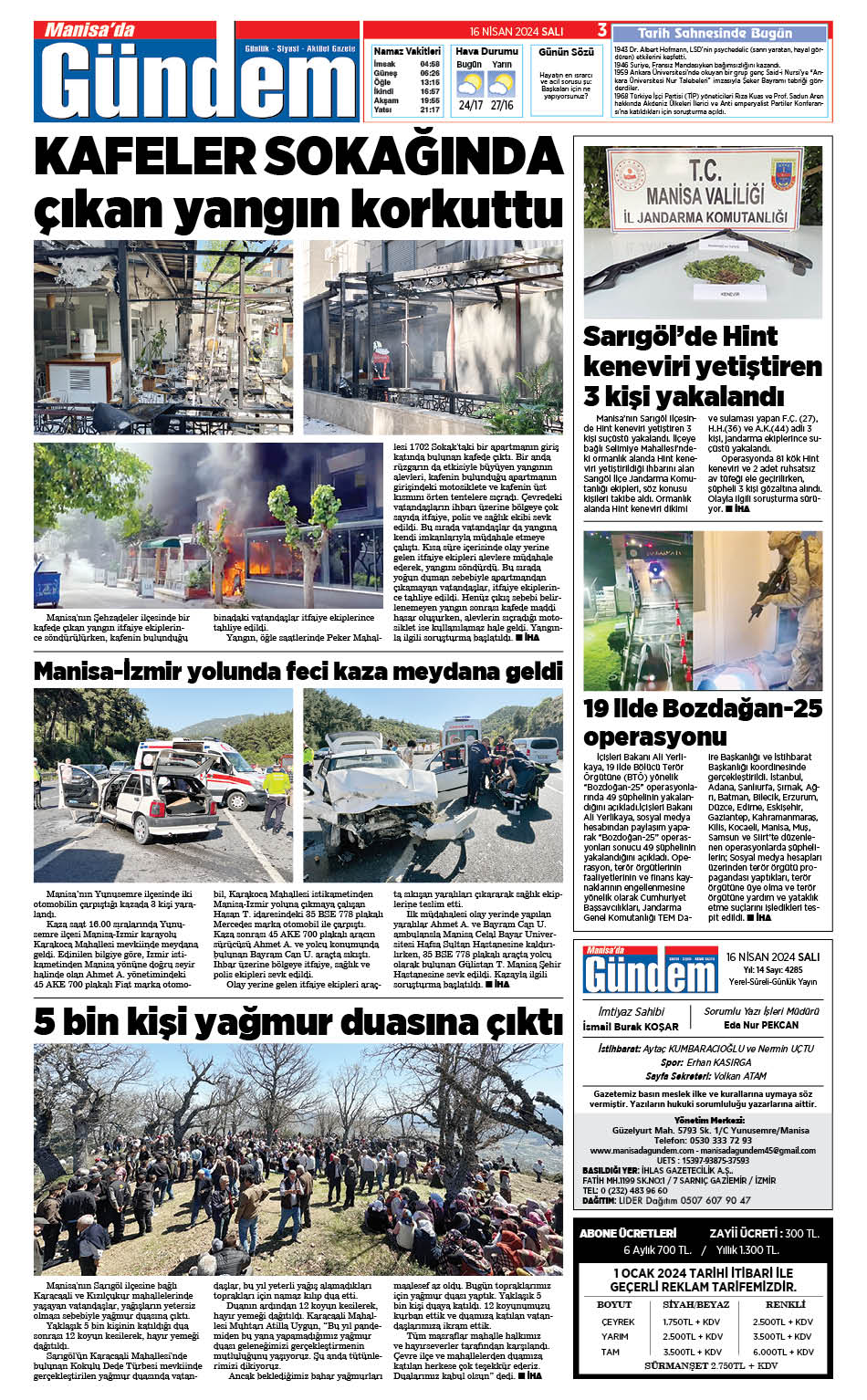 16 NİSAN 2024 GAZETEMİZ