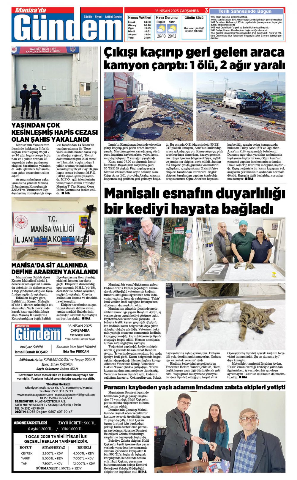 16 NİSAN 2025 GAZETEMİZ