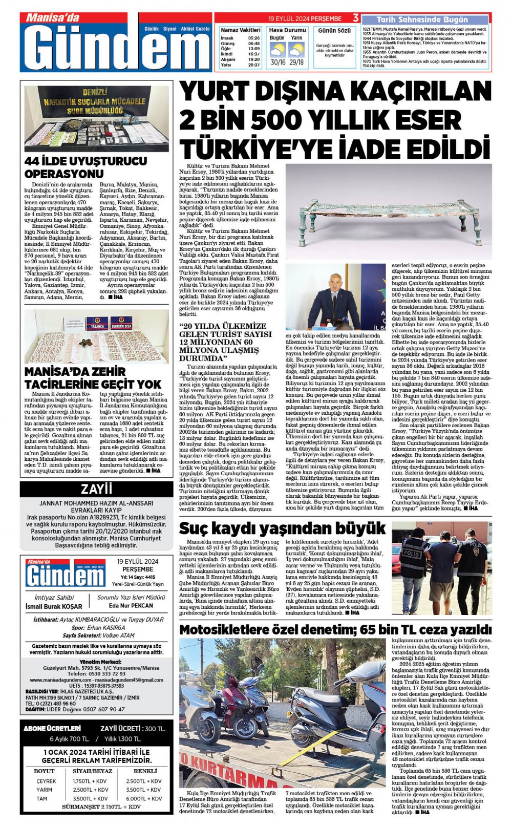 19 EYLÜL 2024 GAZETEMİZ
