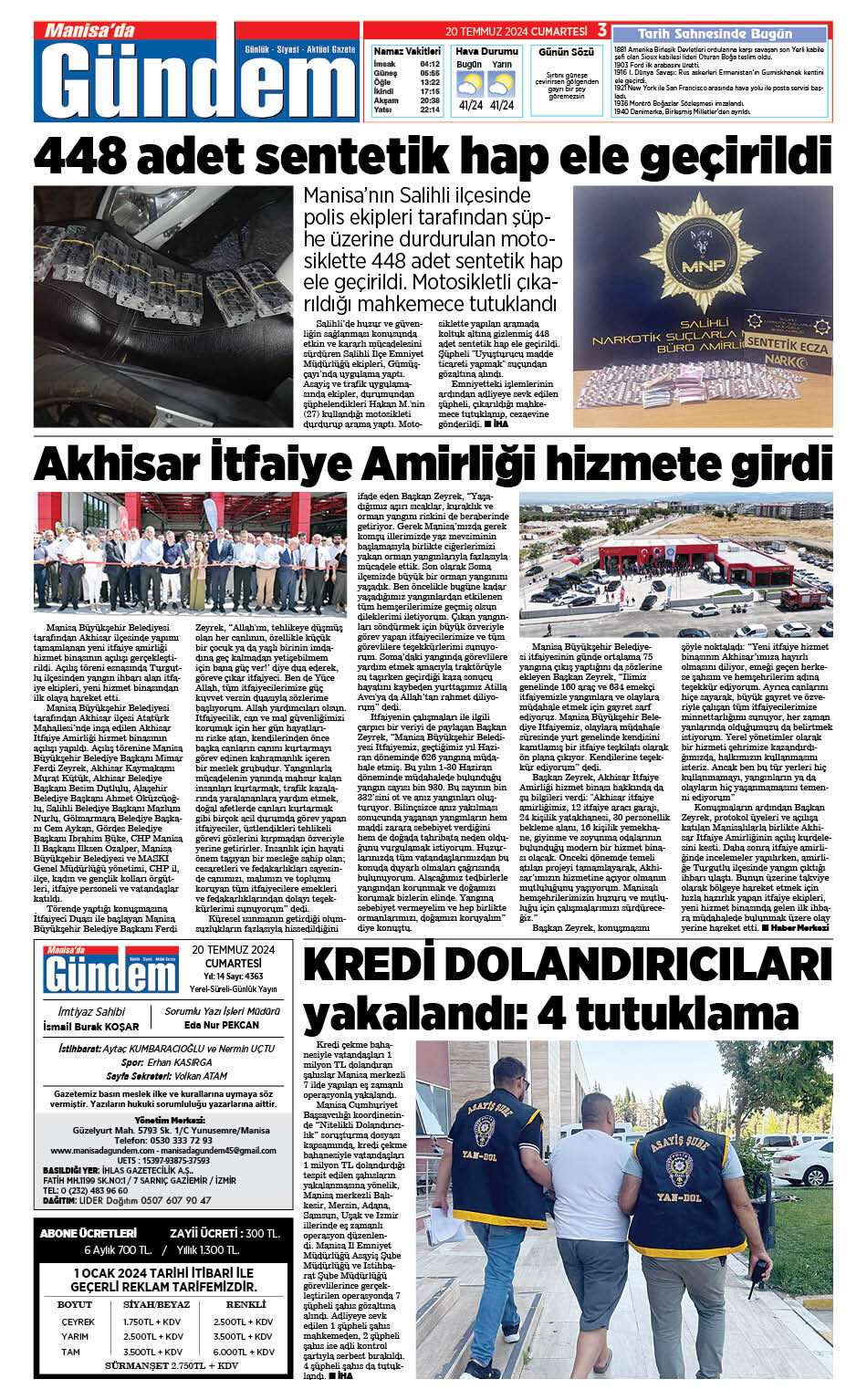 20 Temmuz 2024 GAZETEMİZ
