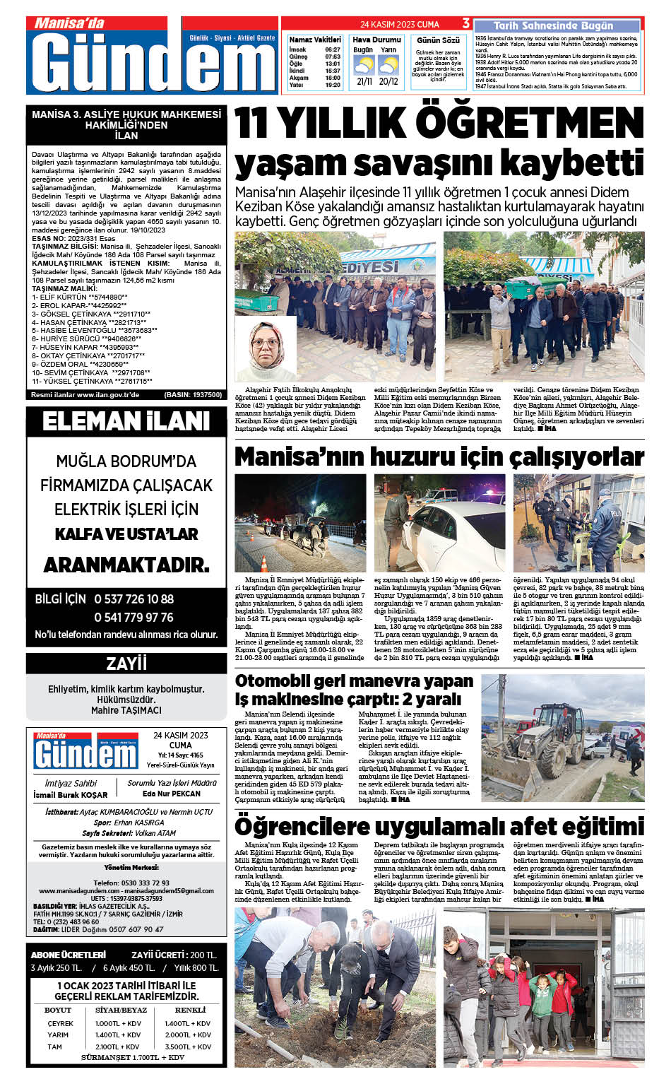 24 Kasım 2023 GAZETEMİZ