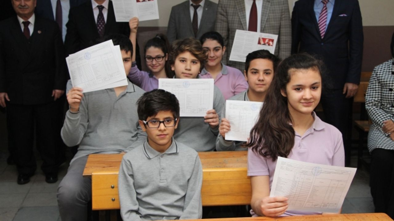Konuşmaların ardından törene katılan protokol üyeleri önce ders notlarıyla okul birincisi olan öğrencilere hediyeler dağıttı. Protokol üyeleri ardından bir sınıfa girerek öğrencilere karne dağıttı.