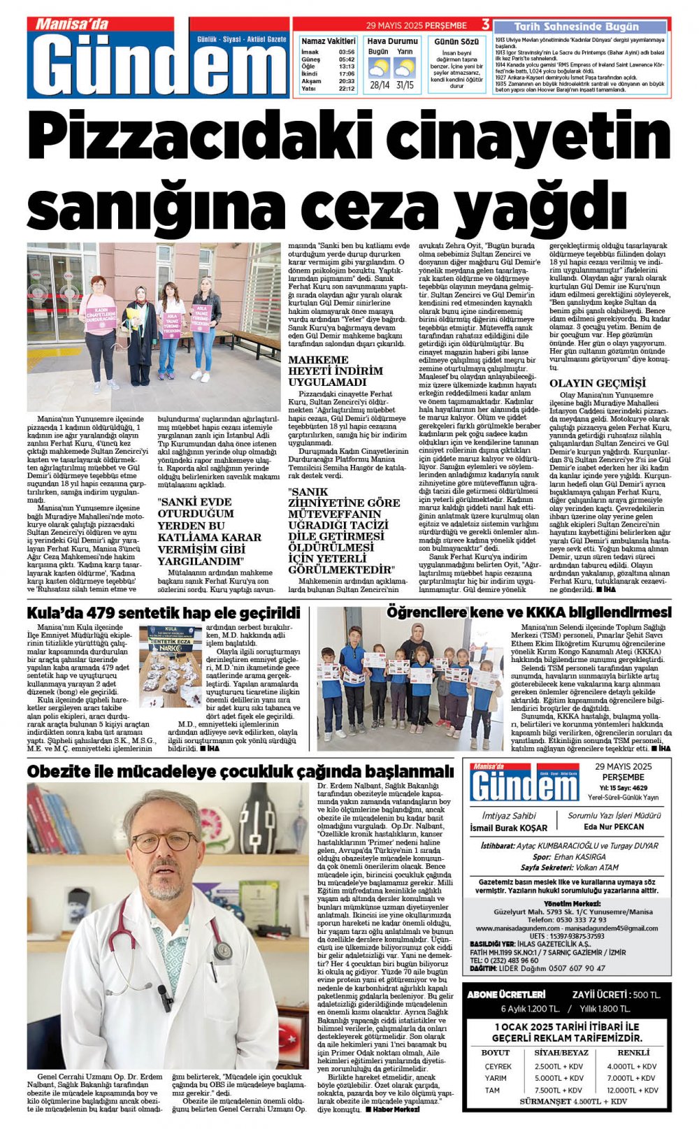 29 MAYIS 2025 GAZETEMİZ