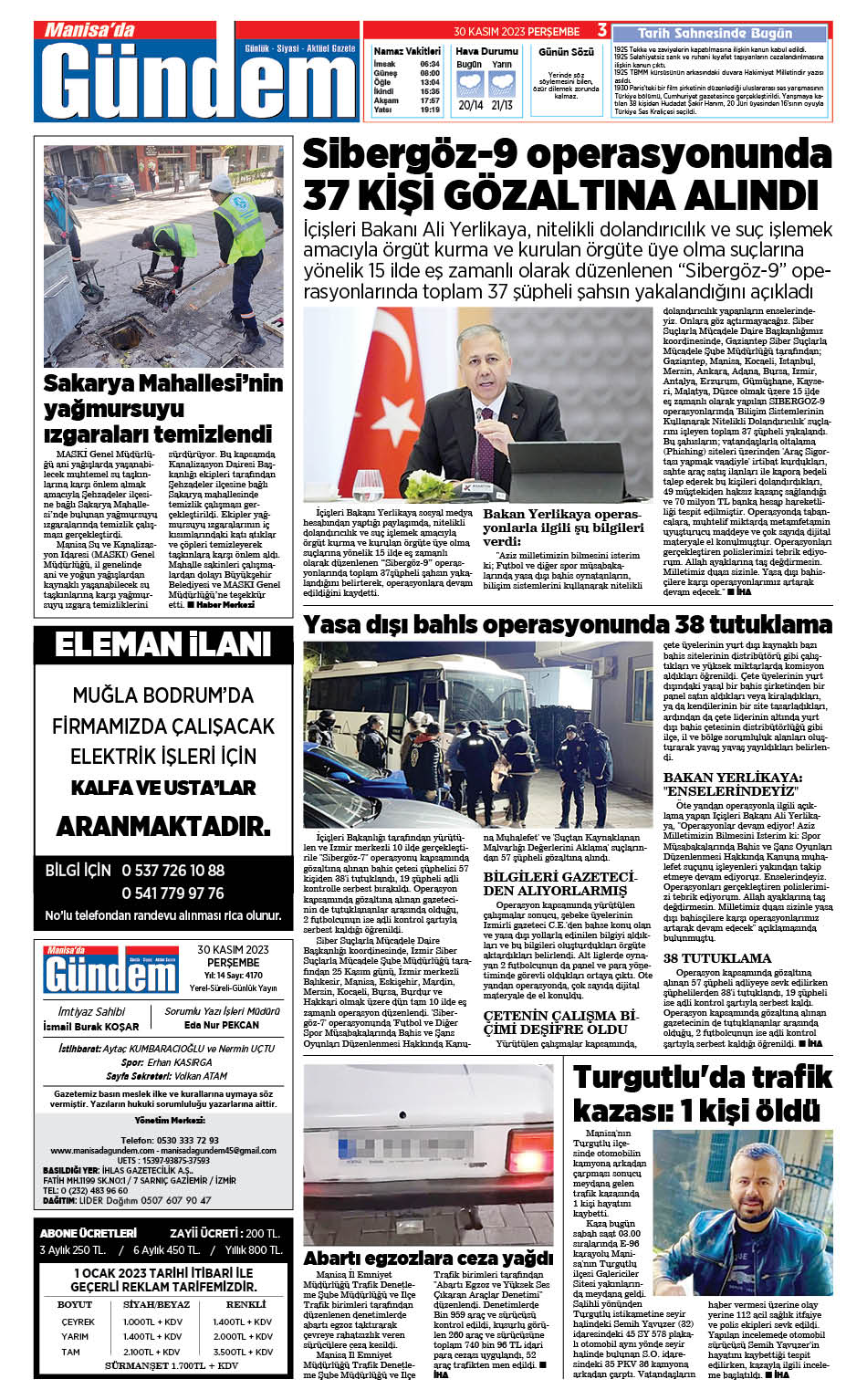 30 Kasım 2023 GAZETEMİZ
