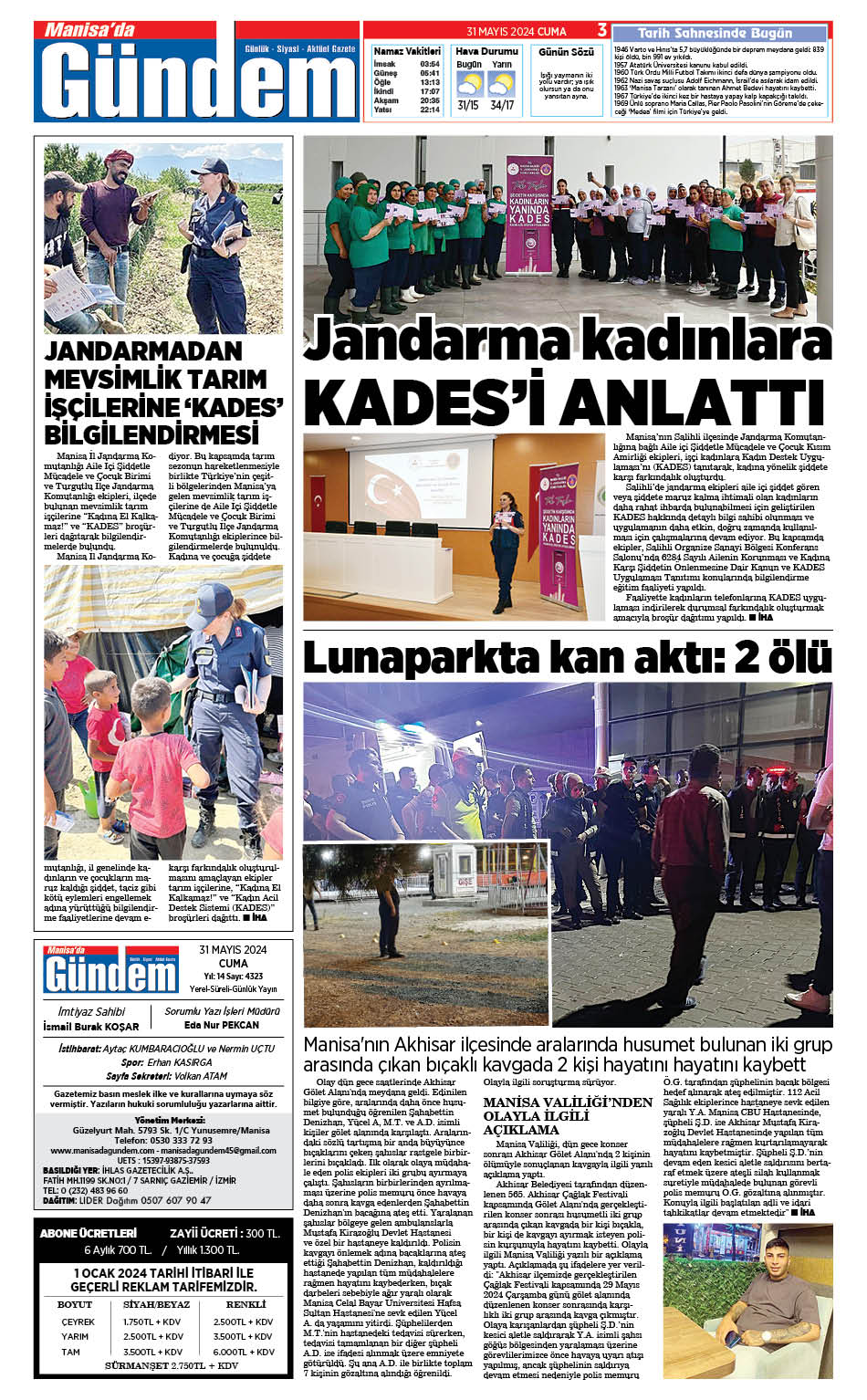 31 MAYIS 2024 GAZETEMİZ
