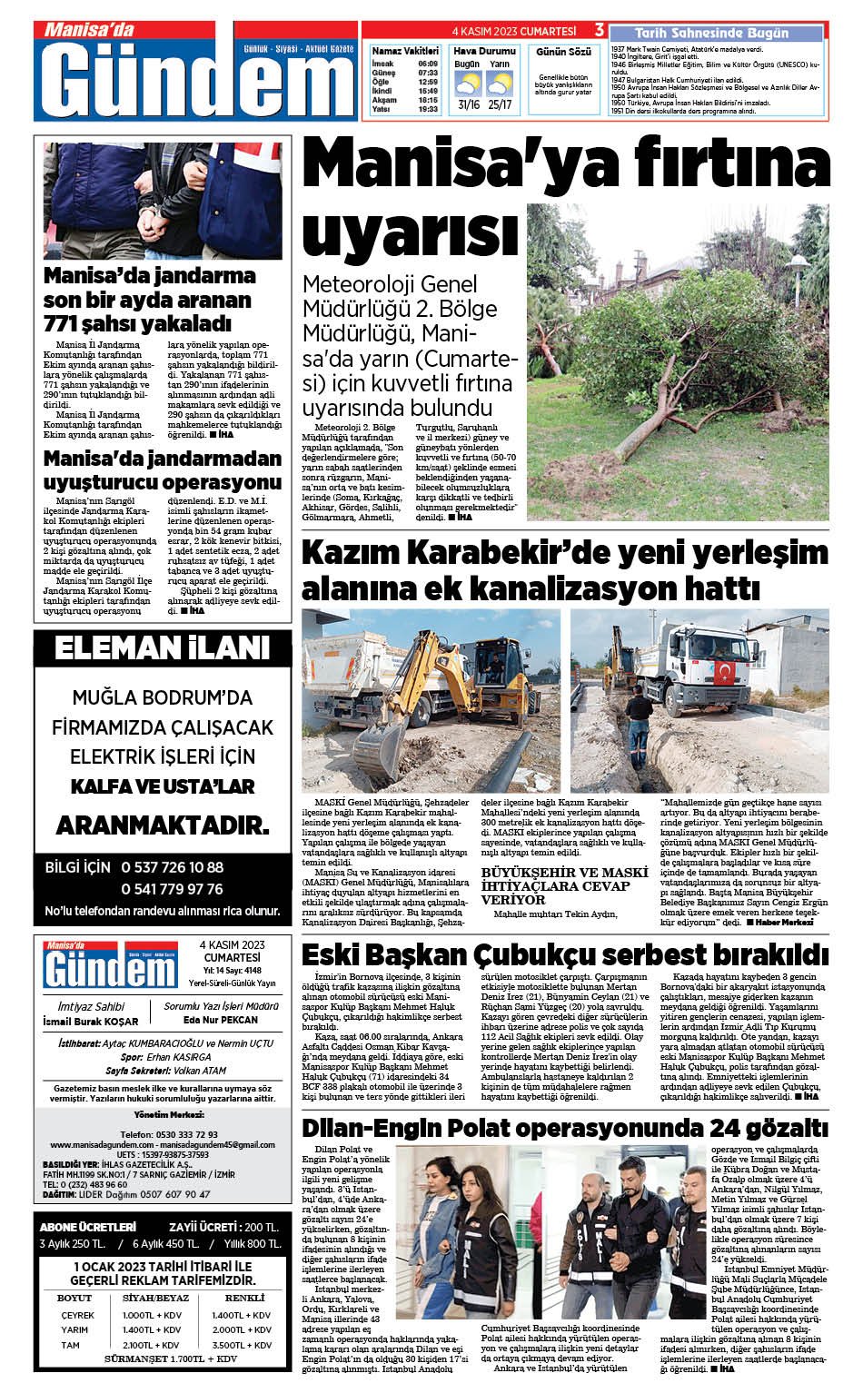 4 Kasım 2023 GAZETEMİZ
