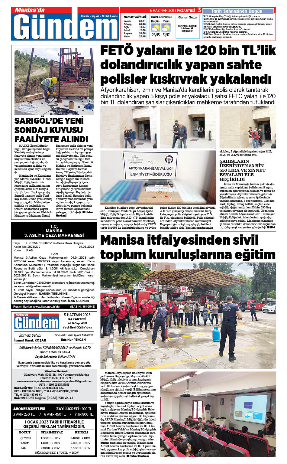 5 Haziran 2023 GAZETEMİZ