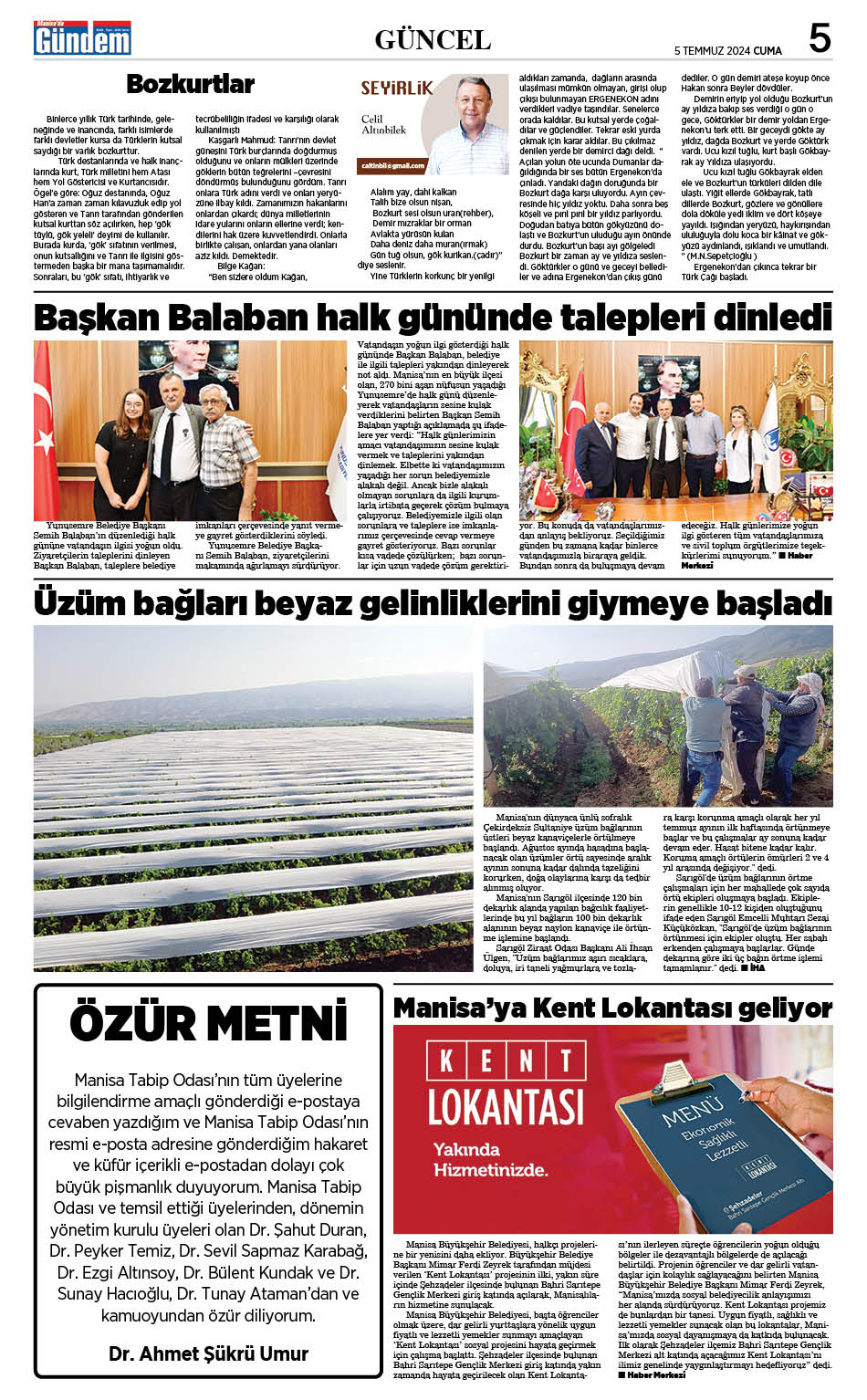 5 Temmuz 2024 GAZETEMİZ