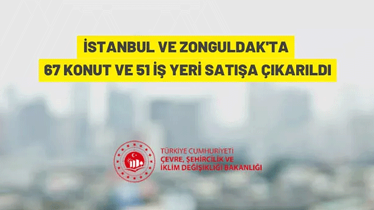 Çevre, Şehircilik ve İklim Değişikliği Bakanlığı, İstanbul Zeytinburnu ve Zonguldak Merkez'de 67 konut ve 51 iş yerini açık artırma ile satışa çıkardı.