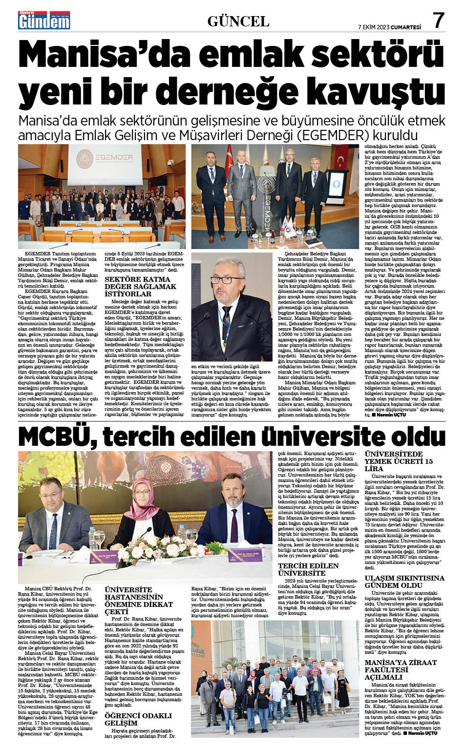 7 Ekim 2023 GAZETEMİZ
