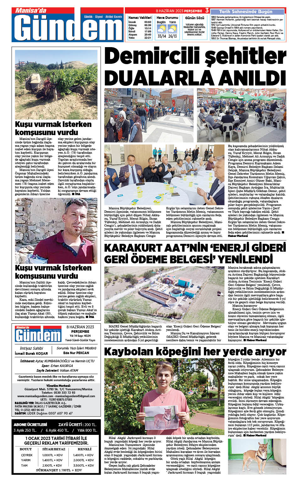 8 Haziran 2023 GAZETEMİZ