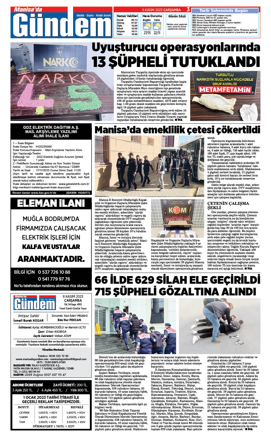 8 Kasım 2023 GAZETEMİZ