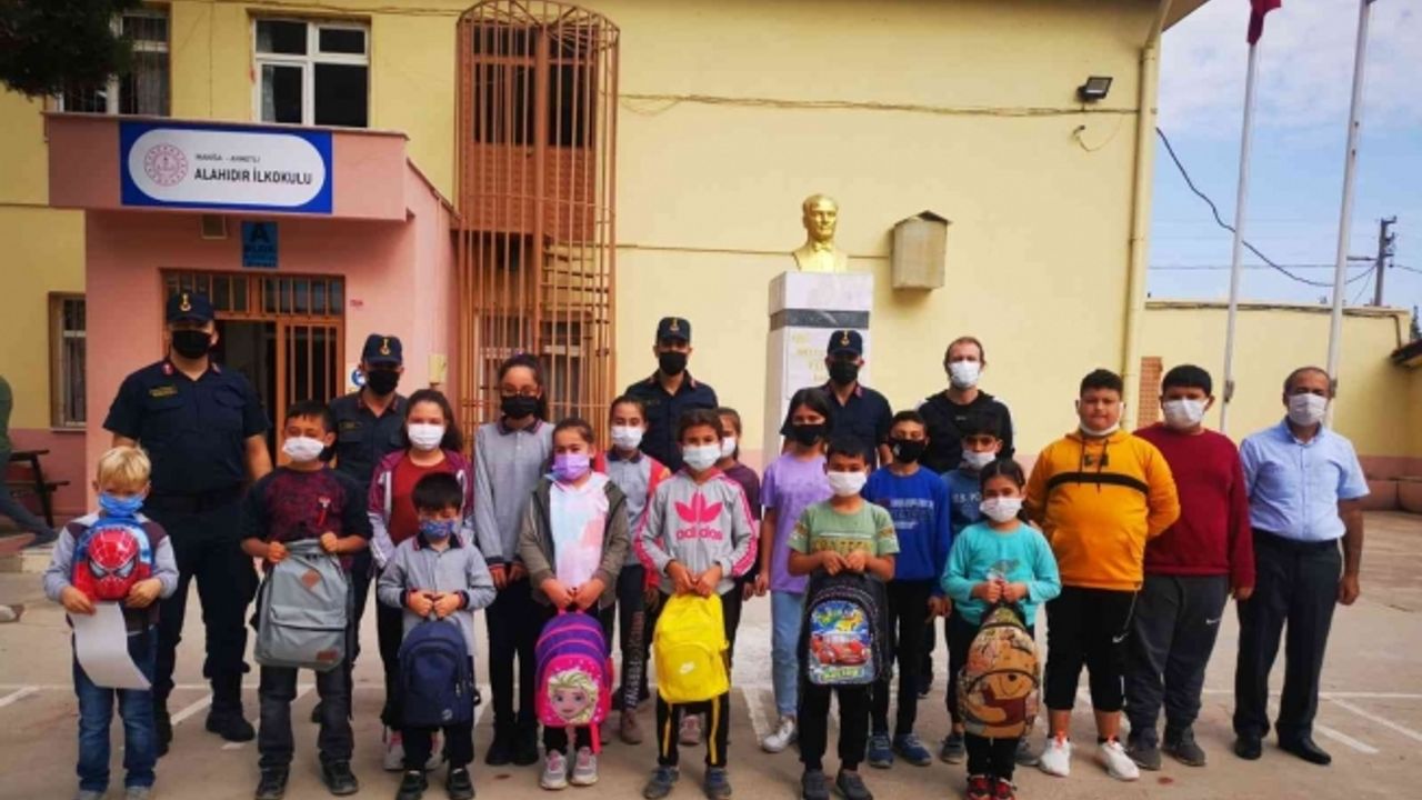 Manisa’nın Ahmetli ilçesinde, jandarma komutanlığı ekipleri sosyal sorumluluk projesi kapsamında 35 öğrenciye okul ihtiyaçları yardımında bulunuldu.
