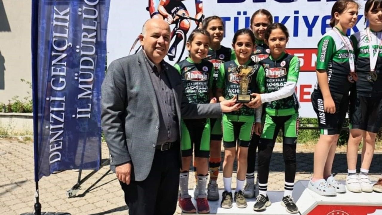 Bisiklet Antrenörü Saniye Sezer Gürsesliler tarafından yarışlara hazırlanan Akhisar İlçe Spor Kulübünün U12 kızlar kategorisinde yarışan Miray Akcan, Meryem Karataş, Hilal Kaymaz, İkranur Ünal ve Elif Mira Şahin’den oluşan takım ikinci olarak büyük bir başarıya imza attı. Akhisar Gençlik ve Spor İlçe Müdürü Hasan Hüseyin Oktay elde edilen başarıda emeği geçen sporcu ve velileri ile antrenörleri tebrik etti.