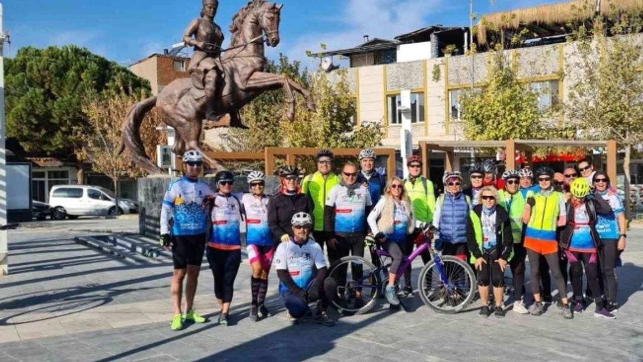 Alaçatı Salı Bisikletçileri, milli mücadele kahramanlarından Şehit Gördesli Makbule Hanımın heykelinin önünde hatıra fotoğrafı çektirdikten sonra Gördes Kültür ve Doğa Derneği Başkanı Emine Ataman Koç ile Gördes ilçesinin farklı noktalarını bisikletleriyle gezerek ziyaretlerini tamamladı.