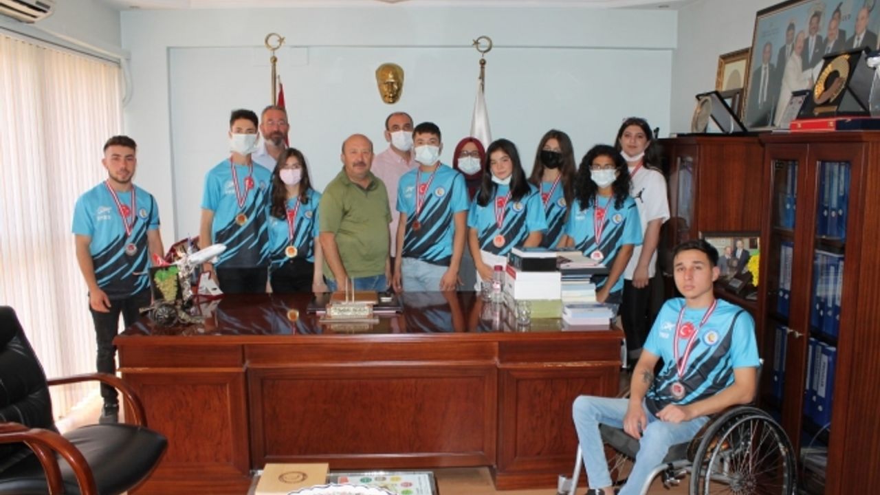 Manisa’da yapılan ’FF Salon Model Uçak Türkiye Şampiyonası 1. Etap’ yarışmasında 18 madalyanın 10’unu kazanarak büyük bir başarıya imza atan Alaşehir İMKB Mesleki ve Teknik Anadolu Lisesi öğrencileri Alaşehir Ticaret ve Sanayi Odası Yönetim Kurulu Başkanı Mustafa Seyhan’ı ziyaret etti. Seyhan, gençlere ve eğitime verdikleri desteklerin başarılarla taçlandırılmasının gururunu yaşadıklarını söyledi.