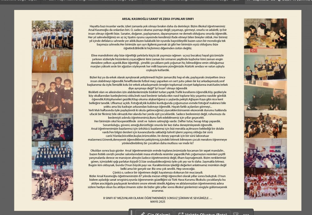 Ali Rıza Çevik ilkokulu B sınıfı 87 mezunu öğrencileri ,öğretmenleri Arsal Kasımoğlu’nun adına vefa , sevgi ve saygı örneği bir davranış biçimi sergileyerek YunusEmre İlçe Milli Eğitim müdürlüğüne bir atölye açtırma yönünde yaptıkları proje başvurusu sonucunda ilçede uygunluğu tespit edilen ,Türk Hava Kurumu İlkokulu’nun bir bölümünü “Arsal Kasımoğlu Sanat ve Zeka Oyunları Atölyesi “ adıyla kurularak , geçtiğimiz hafta YunusEmre İlçe Milli Eğitim Müdürü Yıldıray Demirtaş , Türk Hava Kurumu Okul Müdürü Özcan Özdemir öncülüğünde açılışı gerçekleştirildi.