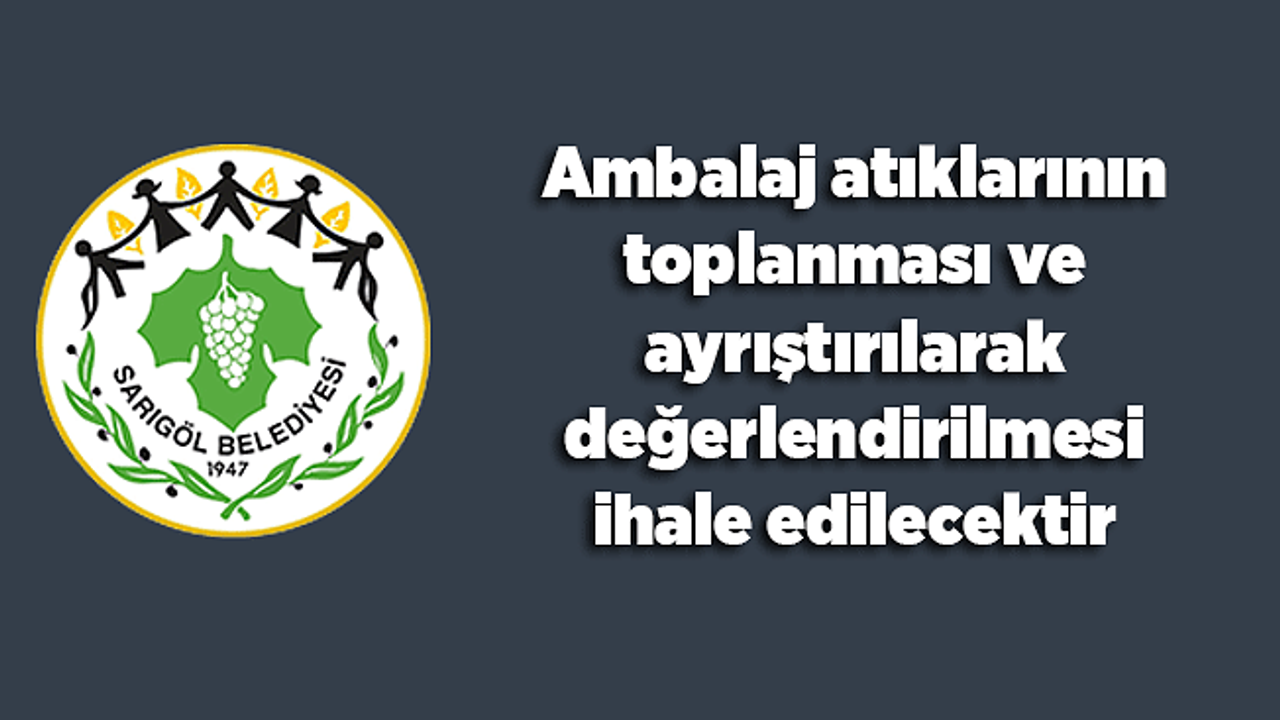 Sarıgöl Belediyesi hizmet sınırları içerisinde bulunan yirmi mahalleden,  Resmi Gazete’de yayımlanan Sıfır Atık Yönetmeliği ve Sarıgöl  Belediyesi Sıfır Atık Yönetim Planı’na uygun olarak üretim artıkları hariç Atık Yönetimi Yönetmeliğindeki atık tanımına uyan her türlü ambalaj ve ambalaj malzemesinin (kağıt-karton, plastik, metal, cam, kompozit vb.) kaynağında ayrı toplanması ve lisanslı Ambalaj Atıkları Toplama ve Ayırma Tesisi’nde ayrıştırılarak değerlendirilmesi işi 2886 sayılı Devlet İhale Kanununun 45. maddesi gereğince açık teklif usulü ihale edilmek suretiyle 01.04.2023 – 31.03.2024 tarihleri arasını kapsayan kiralama işlemi yapılacaktır. Tahmin edilen yıllık muhammen kira bedeli,KDV hariç aylık ortalama 7,25 ton karışık ambalaj atığı için, 7.250,00 TL’dır.