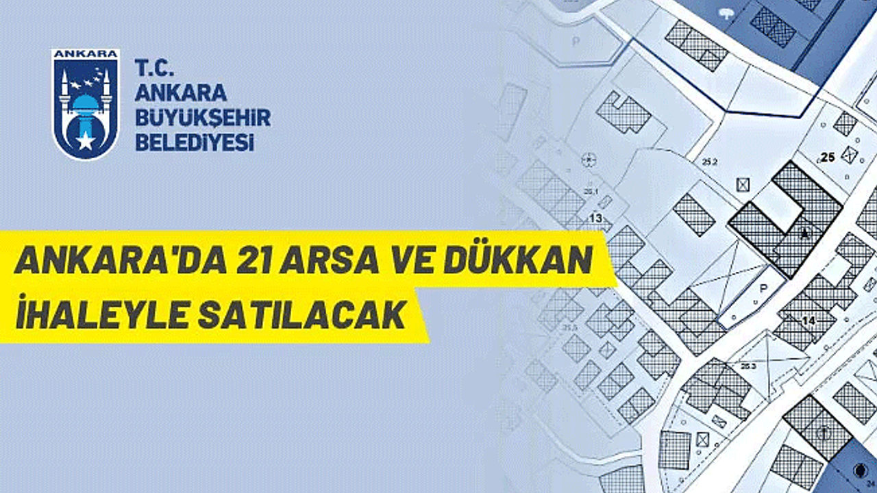 Ankara Büyükşehir Belediyesi, Çankaya, Çubuk, Etimesgut, Gölbaşı, Mamak, Yenimahalle, Çankaya ve Keçiören ilçelerinde bulunan muhtelif nitelikteki 21 adet arsa ile Yenimahalle ilçesinde bulunan 1 adet dükkanı, 2886 sayılı Devlet İhale Kanunu’nun 36. maddesine göre kapalı zarf usulü ile satacak.