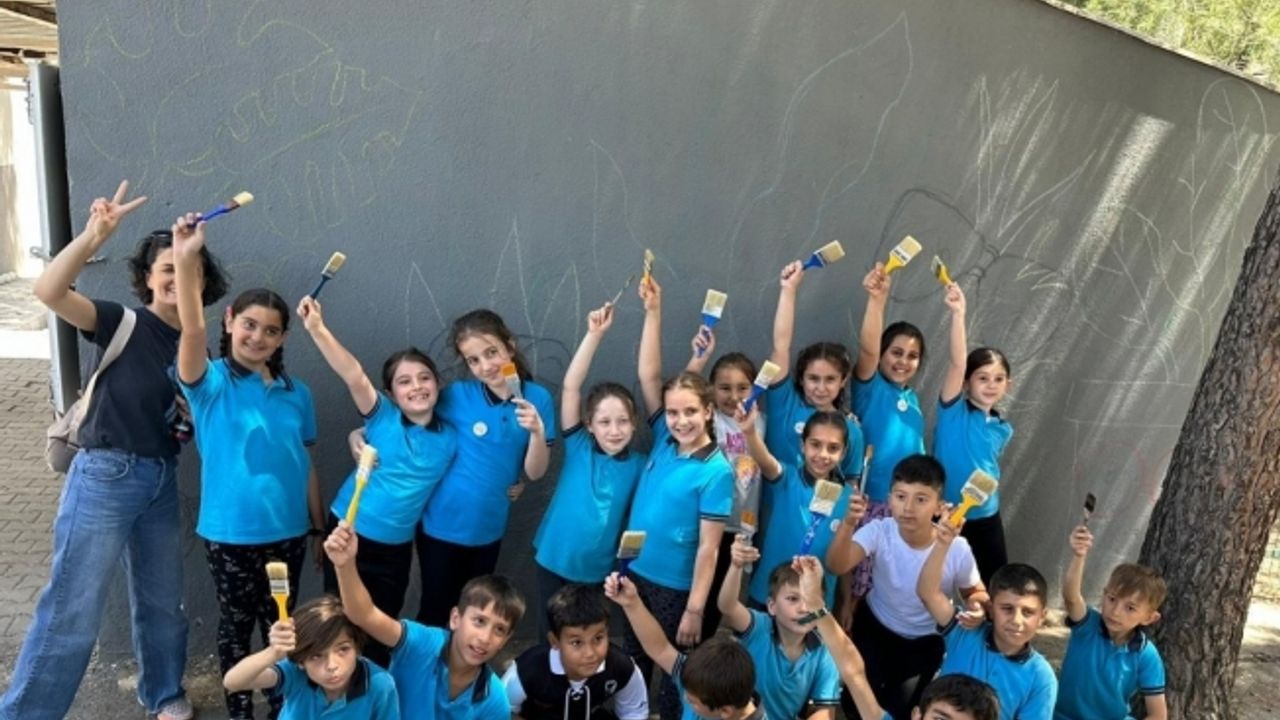 Manisa’nın Yunusemre ilçesindeki Organize Sanayi İlkokulu 3-A sınıfı öğrencileri, Anneler Günü münasebetiyle anneleriyle beraber okulun duvarlarına resim yaparak boyama etkinliği gerçekleştirdi.