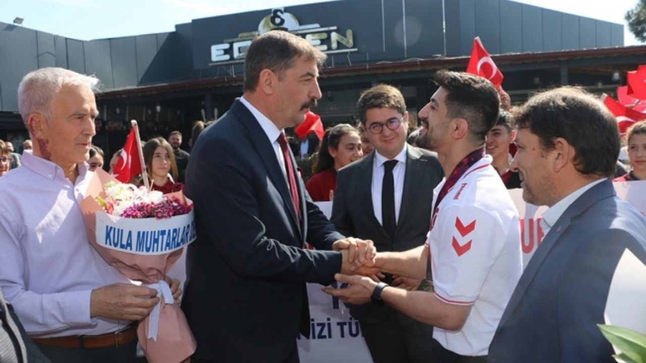 Şampiyon güreşçi Kerem Kamal, beden eğitimi öğretmenliği görevini de sürdürdüğü Kula’da, sevenleri tarafından adeta bir kahraman gibi karşılandı. İlk olarak Egemen Dinlenme Tesisleri’nde yoğun bir kalabalık tarafından alkışlar ve tezahüratlarla karşılanan Kamal’a, Kula Yaren Ekibi eşlik etti. Kamal, Yaren ekibi eşliğinde şehir turu atarak hemşehrilerini selamladı. Şehir turunun ardından Kerem Kamal, görev yaptığı Fatih Ortaokulu’na geçti. Burada öğretmen arkadaşları ve öğrenciler tarafından büyük bir sevgi seliyle karşılanan Kamal’a, okul müdürü Güngör Zobudoğuş tarafından çiçek takdim edildi. Törende duygu dolu anlar yaşanırken, Kamal’ın başarısı öğrencilere ilham kaynağı oldu.