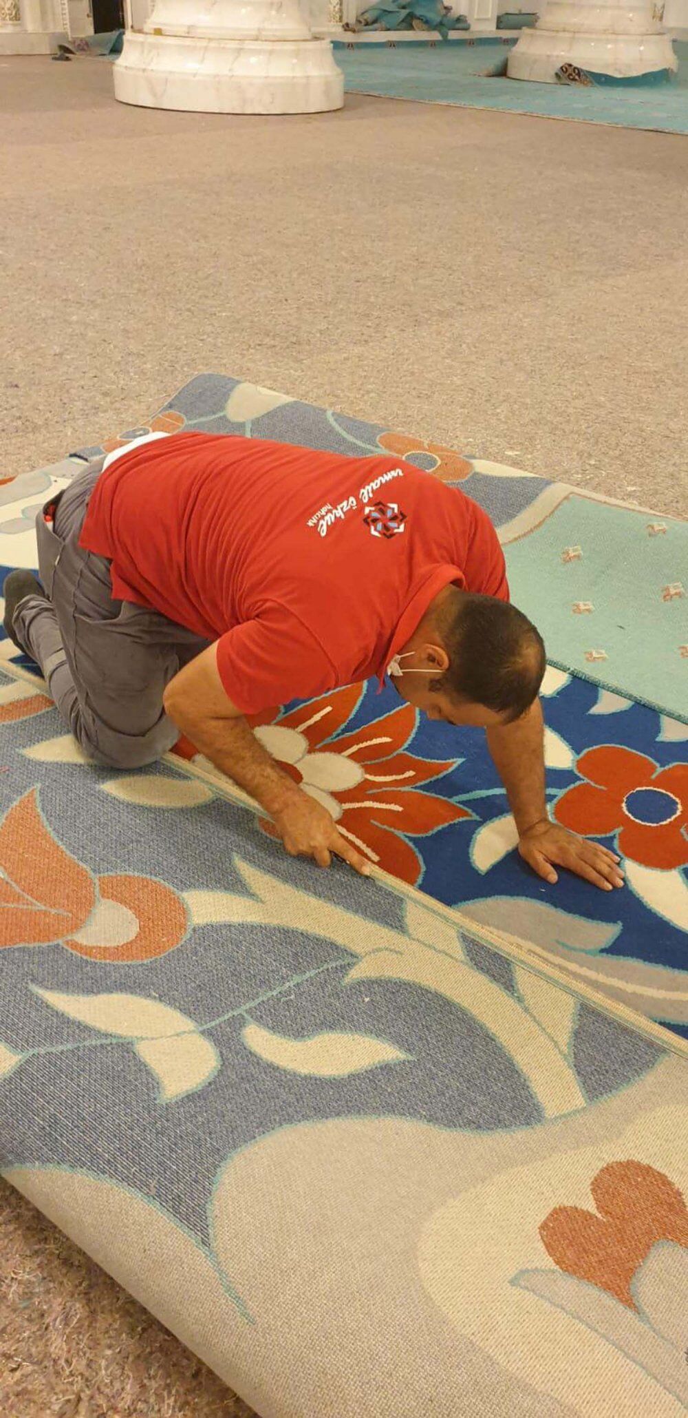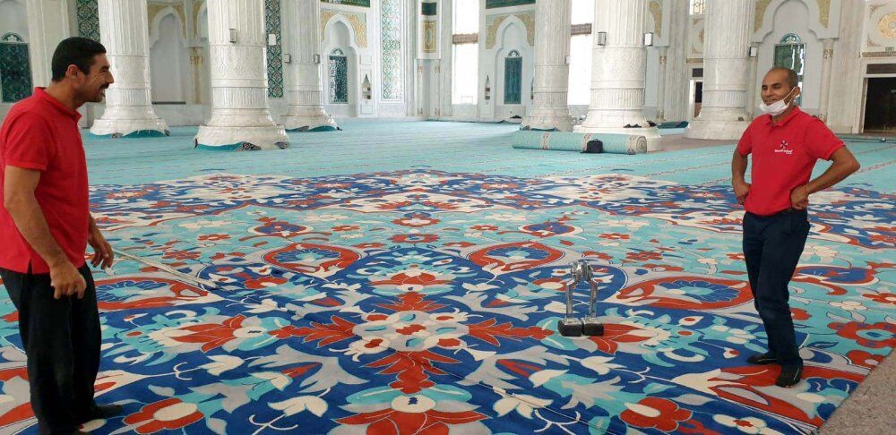 Ayasofya Cami’ne dokunan halıların ardından Orta Asya’nın en büyük camisi olarak bilinen Kazakistan’daki Hazreti Sultan Cami’ne de Demirci’den halı dokundu. Kazakistan’ın Başkenti olan Nur Sultan’da bulunan Hazreti Sultan Cami’ne halıları sermek için götüren İsmail Özkul, firma çalışanlarıyla birlikte büyük bir özveriyle hem Demirci’nin hem de Türkiye’nin adını duyuruyor.
