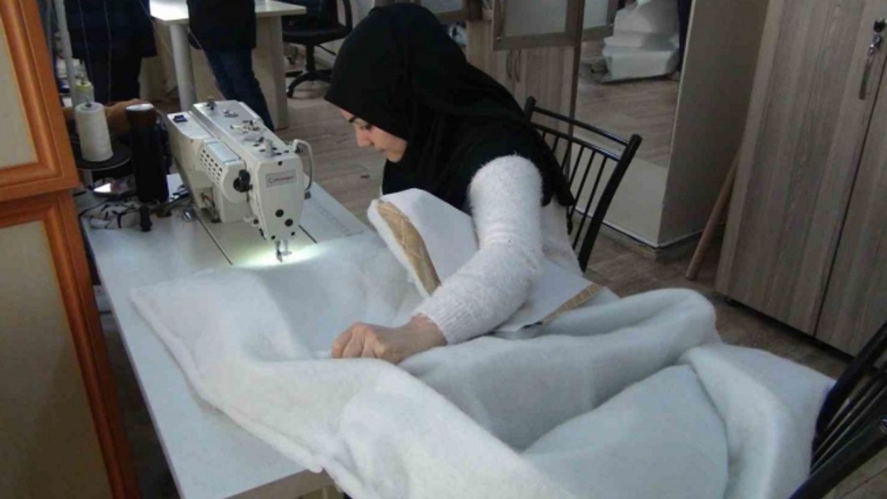 Kuruma yapılan kumaşları en iyi şekilde değerlendirmeye çalıştıklarını kaydeden kurs öğretmenlerinden Bedriye Vurgun, "Kurslarımıza ara verdiğimiz halde battaniye ve elyaf yorgan dikimi yapıyoruz. İnşallah yaptığımız yardımlar en kısa zamanda kendilerine ulaşır" şeklinde konuştu.