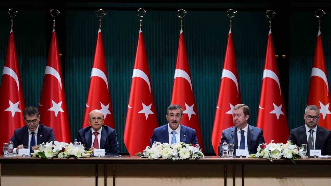 2026-2028 dönemi Orta Vadeli Program’a (OVP) ilişkin Cumhurbaşkanı Yardımcısı Cevdet Yılmaz öncülüğünde ve Hazine ve Maliye Bakanı Mehmet Şimşek, Merkez Bankası Başkanı Fatih Karahan, Cumhurbaşkanlığı Strateji ve Bütçe Başkanı İbrahim Şenel ve Cumhurbaşkanlığı Genel Sekreteri Hakkı Susmaz’ın katılımıyla basın toplantısı düzenlendi.