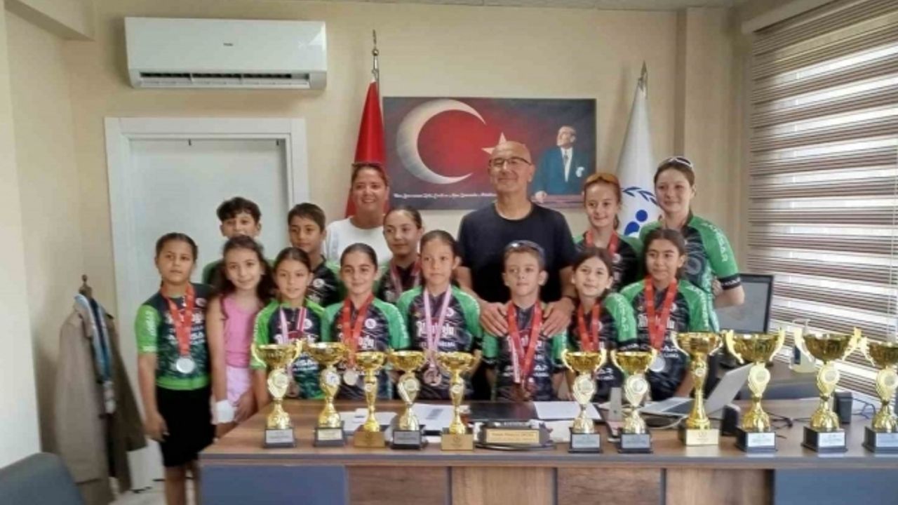 Ziyaretin sonunda sporcular, elde ettikleri madalyalarla birlikte hatıra fotoğrafı çektirdi.