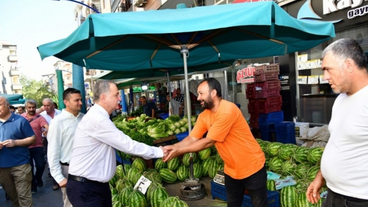 Yunusemre Belediye Başkanı Semih Balaban, Karaköy pazar yerinde esnaf ziyareti yaptı.
