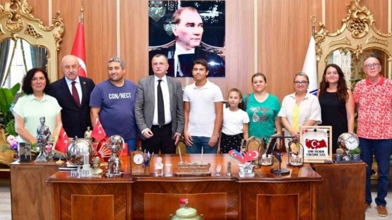 LGS’de 500 tam puan alarak birincisi olan Ferhat Ege Akarsu, Kağan Genç, Ali Eren Dalgıç ve Eren Naymanol aileleri, öğretmenleri ve okul yönetimiyle beraber Başkan Balaban’ı ziyaret etti. Başarılı öğrencilere Belediye Başkan Yardımcısı Emine Özge Arslan ve belediye meclis üyeleri de eşlik etti. Öğrencileri tek tek tebrik eden Başkan Balaban, eğitim hayatlarında başarılar diledi.