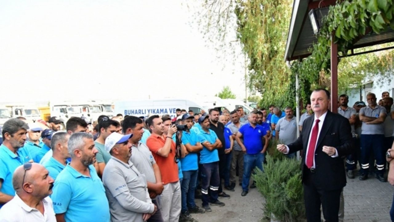 Yunusemre Belediye Başkanı Semih Balaban, Yunusemre Belediye Şantiyesi’nde işçilerle biraraya gelerek promosyon müjdesi verdi. Her zaman işçilerle birarada olmaktan büyük onur duyduğunu dile getiren Başkan Balaban, 5 Eylül tarihinde promosyonların işçilerin hesaplarına yatacağını dile getirdi.