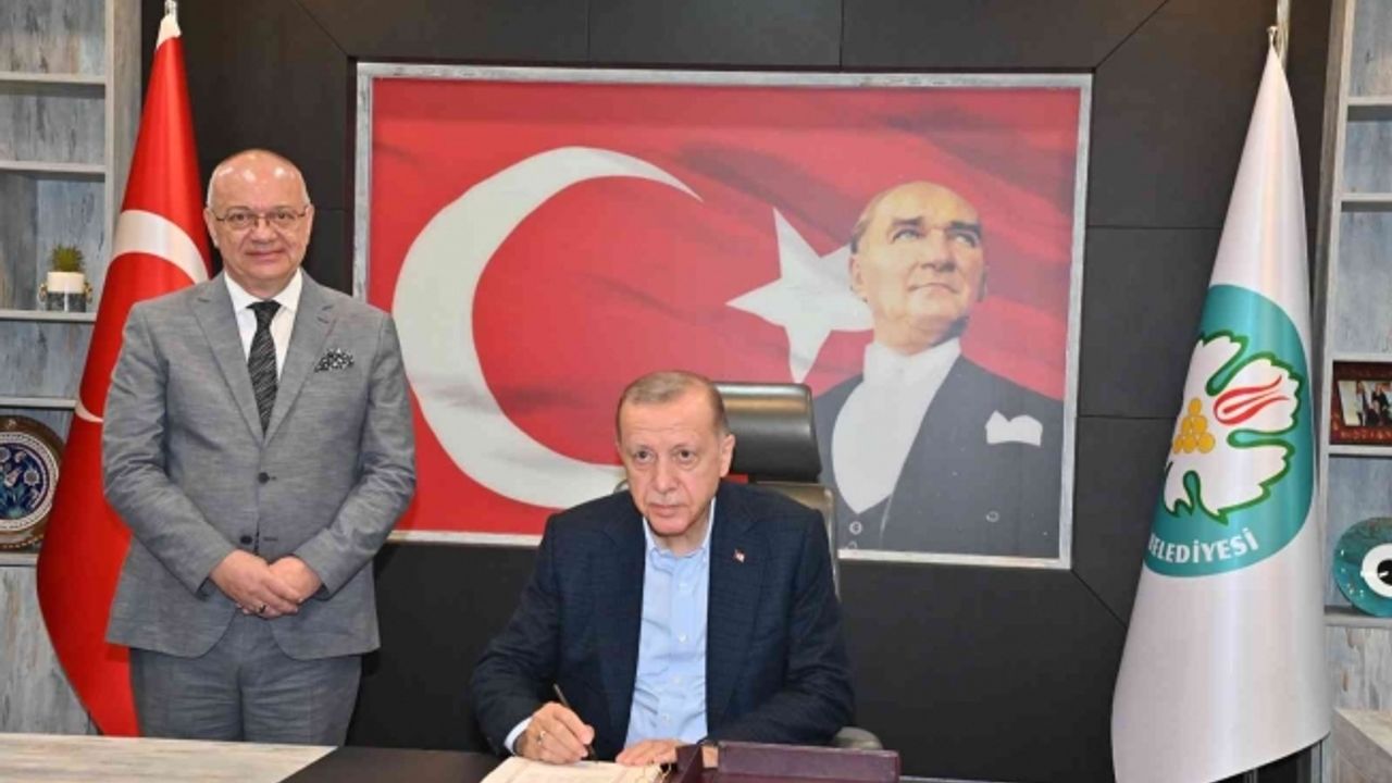 Toplu açılış töreni için Manisa’ya gelen Cumhurbaşkanı Recep Tayyip Erdoğan, Manisa Büyükşehir Belediyesini ziyaret etti. Büyükşehir Belediye Başkanı Cengiz Ergün ile bir araya gelen Cumhurbaşkanı Erdoğan, Büyükşehir Belediyesi anı defterini imzaladı, Başkan Ergün’e çalışmalarında başarılar diledi.