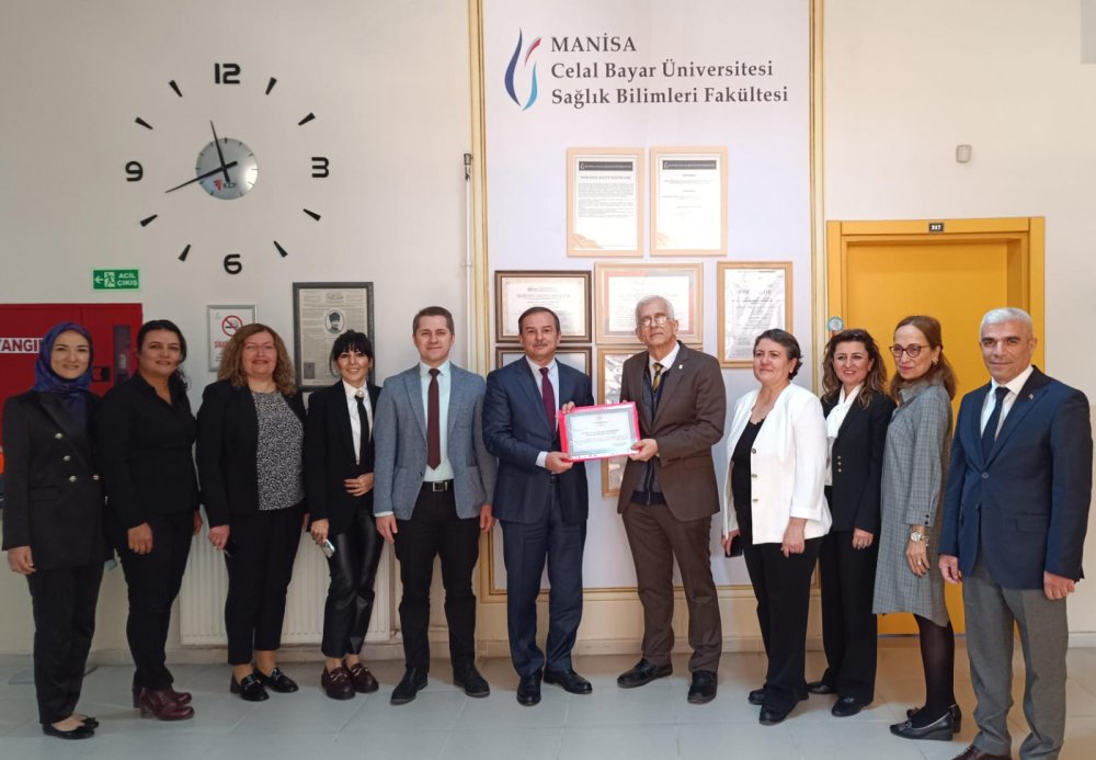 Manisa Celal Bayar Üniversitesi Sağlık Bilimleri Fakültesi Dekanlık binasında gerçekleştirilen törenle sertifika, Manisa İl Sağlık Müdürü Uzm. Dr. Erol Karaca tarafından Fakülte Dekanı Prof. Dr. Seyhun Kürşat'a takdim edildi.