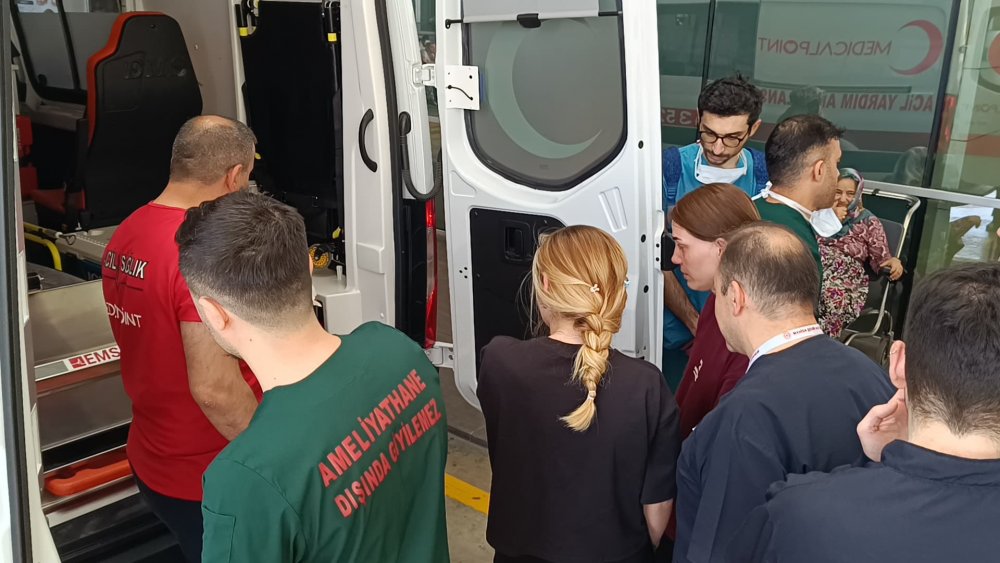 Beyin ölümü gerçekleşen hastanın organları Manisa Şehir Hastanesine gelen 5 kişilik ekip tarafından alınarak, nakledilecek hastalara götürülmek üzere ambulansla yola çıkarıldı. (Turgay Duyar)