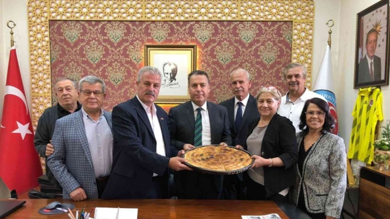 Manisa’nın Turgutlu ilçesine faaliyetlerini sürdüren Bosna Hersek Türkleri Kültür ve Yardımlaşma Derneği Turgutlu Şubesi başkanı ve yönetimi, Turgutlu Kaymakamı Selami Kapankaya’ya Boşnak börekli ziyarette bulundu.
