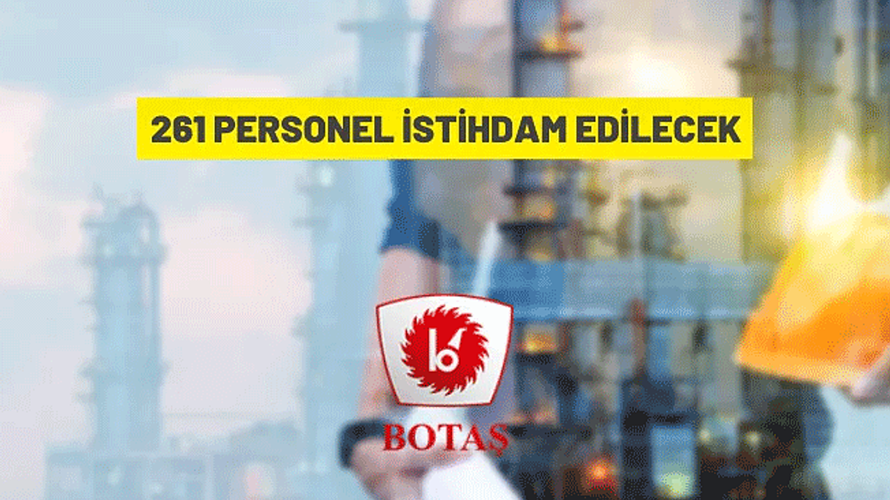 Boru Hatları ile Petrol Taşıma A.Ş. (BOTAŞ), çeşitli branş ve unvanlarda sözlü sınavla 261 personel alımı yapacak.