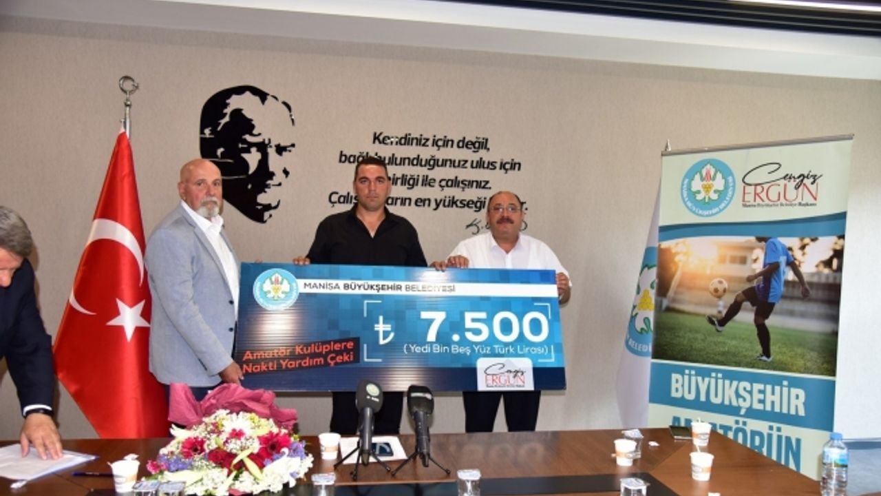 Açılış konuşmalarının ardından Manisa Büyükşehir Belediyesi Başkanvekili Mehmet Palabıyık, Amatör Spor Kulüpleri Federasyonu Başkanı Erol Timur ile birlikte 2. Amatör Ligde mücadele verecek olan Akhisar Yıldırımspor, Kuzeygücü, Alagücüspor Kulübü, Kavaklıdere Gençlik, Karakurt Gençlik, Kula Gençlik Kültür ve Spor Kulübü, Kula Belediye Gençlik Spor, Adala, Beylikli, Sarıgöl Çavuşlar İdman Yurdu, Soma Sotesspor, Murat Germen Okul Spor, Şehitler Okul Spor, Sancaklı Bozköy, Manisa İl Gençlik Spor, Ali Rıza Çevik Spor, Turgutlu Egeli Spor, Gençordu Spor, Çıkrıkçı Gençlik, Manisa Galata Spor ve Manisa Yıldız Spor Kulüp Başkanları, Başkanvekilleri ve temsilcilerine hediye çeklerini takdim etti. Çeklerin takdim edilmesinin ardından günün anısına hatıra fotoğrafı çekilmesiyle 2. Amatör Ligde mücadele eden takımlar için düzenlenen nakdi yardım töreni sona erdi.