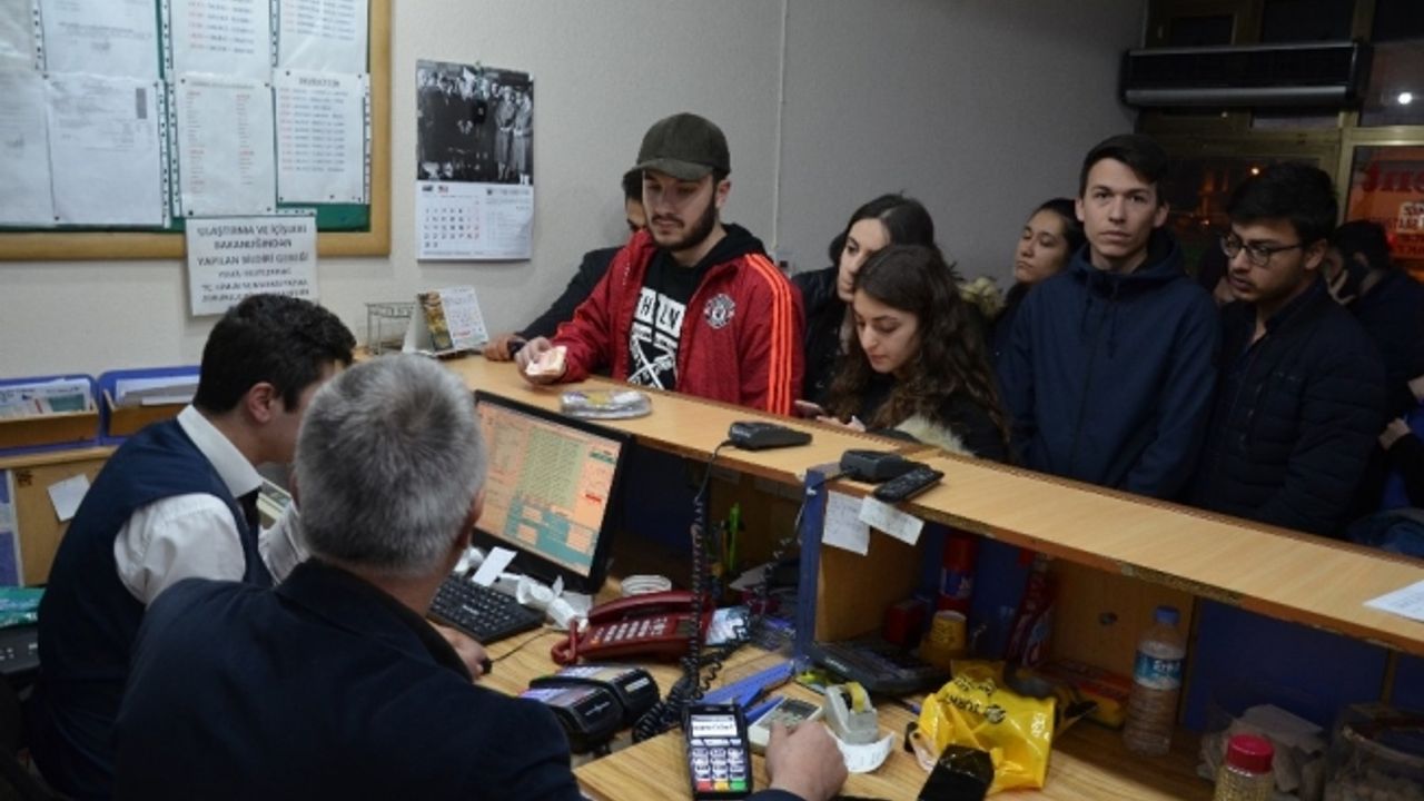 Demirci Çereşe meydanında bulunan otobüs yazıhanesine uzun kuyruklar oluşturan öğrenciler memleketlerine gitmek için otobüs bileti alabilmek için sırada bekledi. İnternet üzerinden yaşanan yoğunluk sebebiyle online bilet alınmadığını ifade eden öğrenciler memleketlerine gidebilmek için bilet kuyruğunda bekliyor.